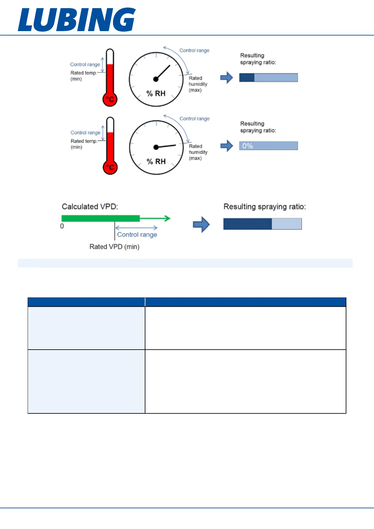 If the “auto VPD” running mode is selected, the spraying ratio is proportional to the position of the calculated VPD