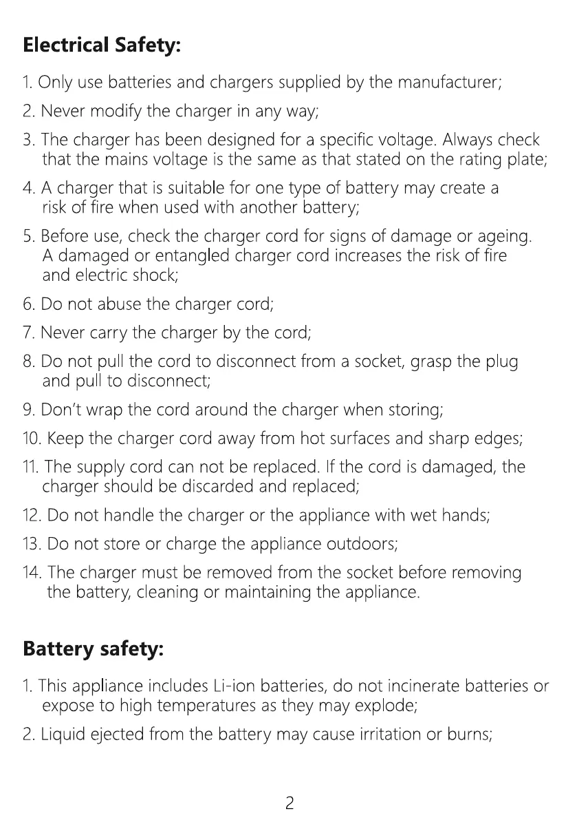1. This appliance includes Li-ion batteries, do not incinerate batteries or