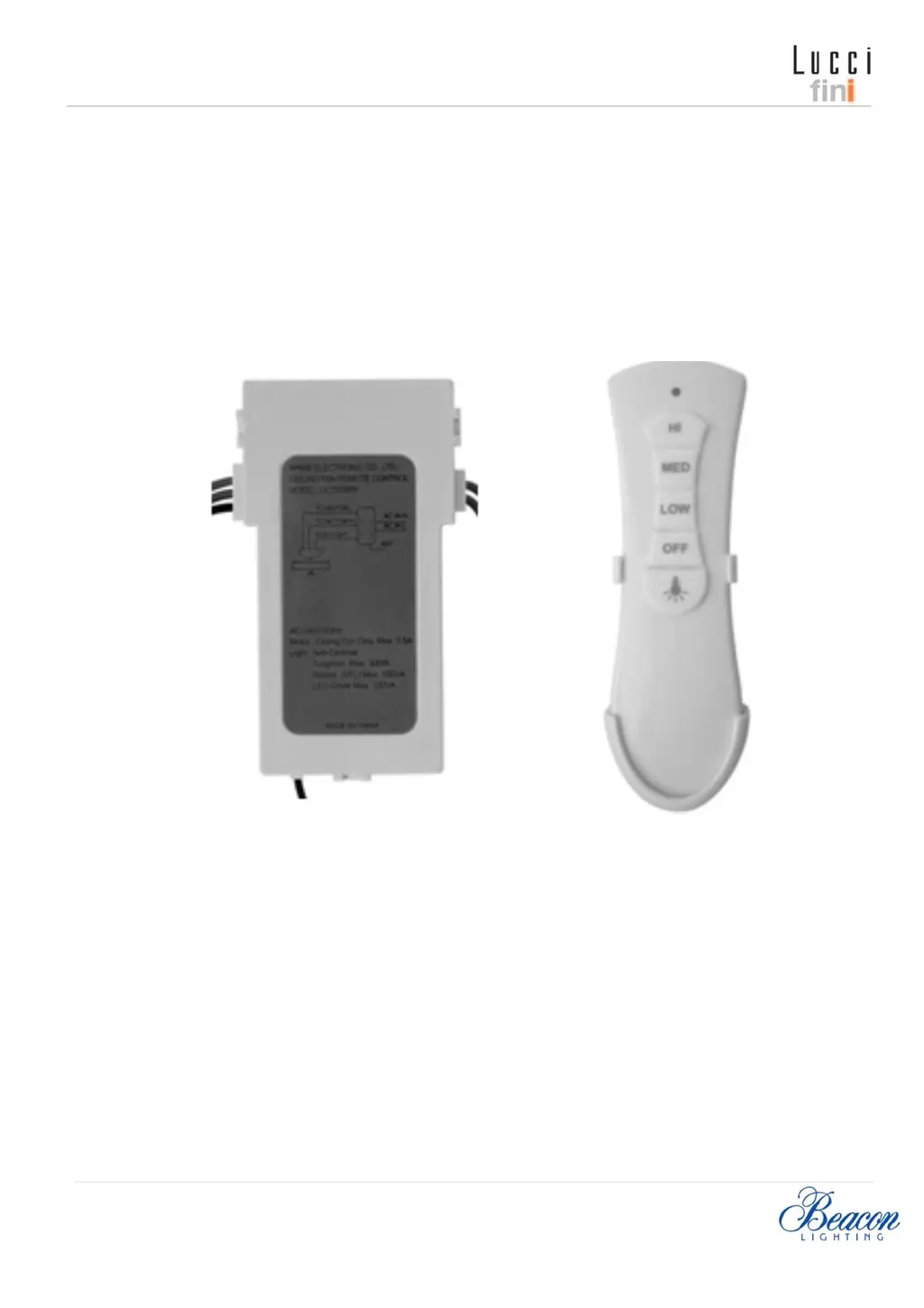 If your Lucci fini Remote Control isn't working at all, here's what you can check: * Make sure the main power is on by checking the fuse, circuit breaker, and wall switch. * Ensure the wall switch powering the remote is turned on. * Verify the receiver wiring connections match the label and wiring diagram. * Confirm the transmitter and receiver DIP switches are set to the same setting. * Try moving closer to the receiver.