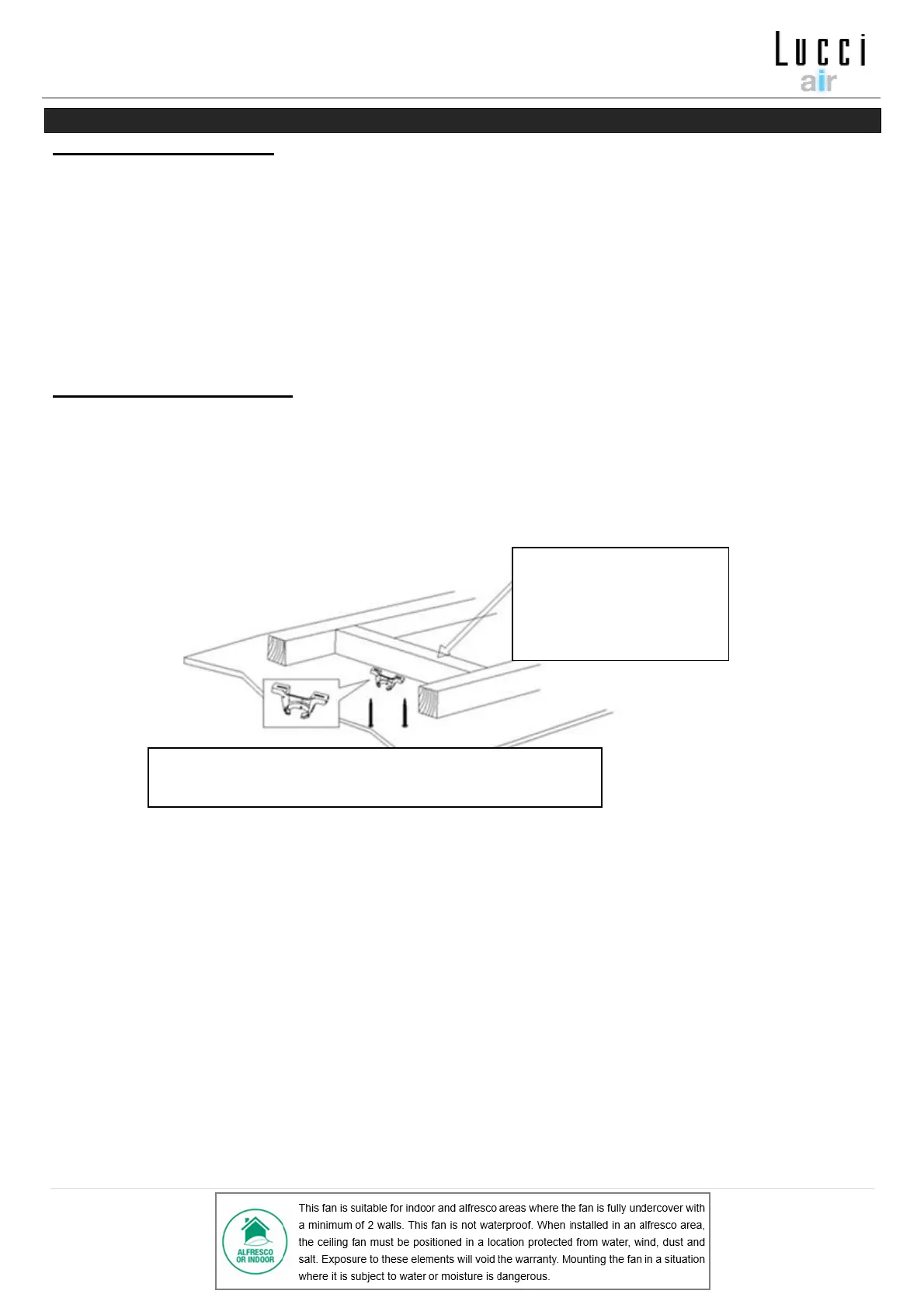 • Der Deckenventilator muss mit einem Abstand von 300 mm von der Flügelspitze bis zum nächsten Objekt
