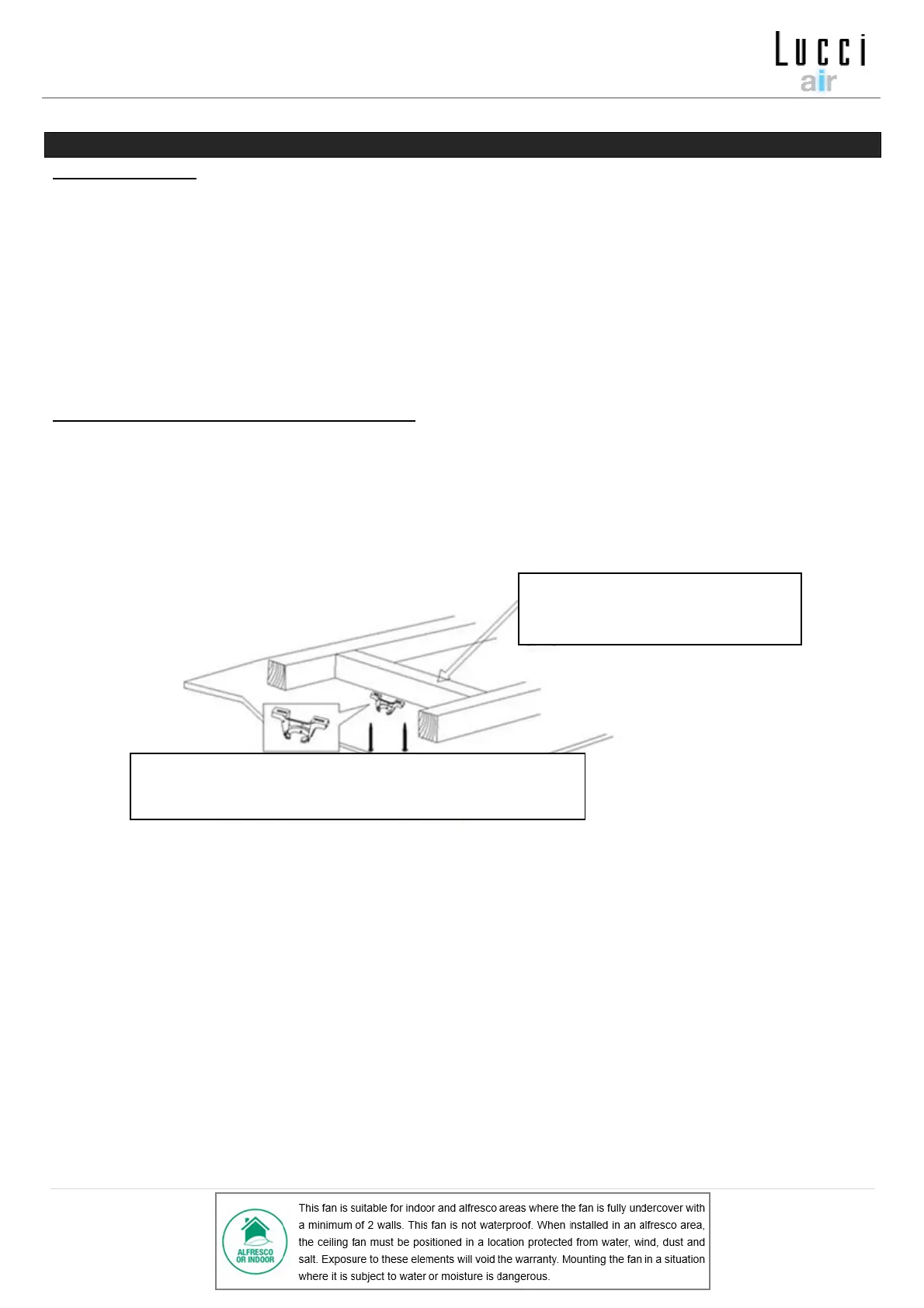 • Installez le support de suspension sur une solive ou une structure capable de supporter une charge d’au