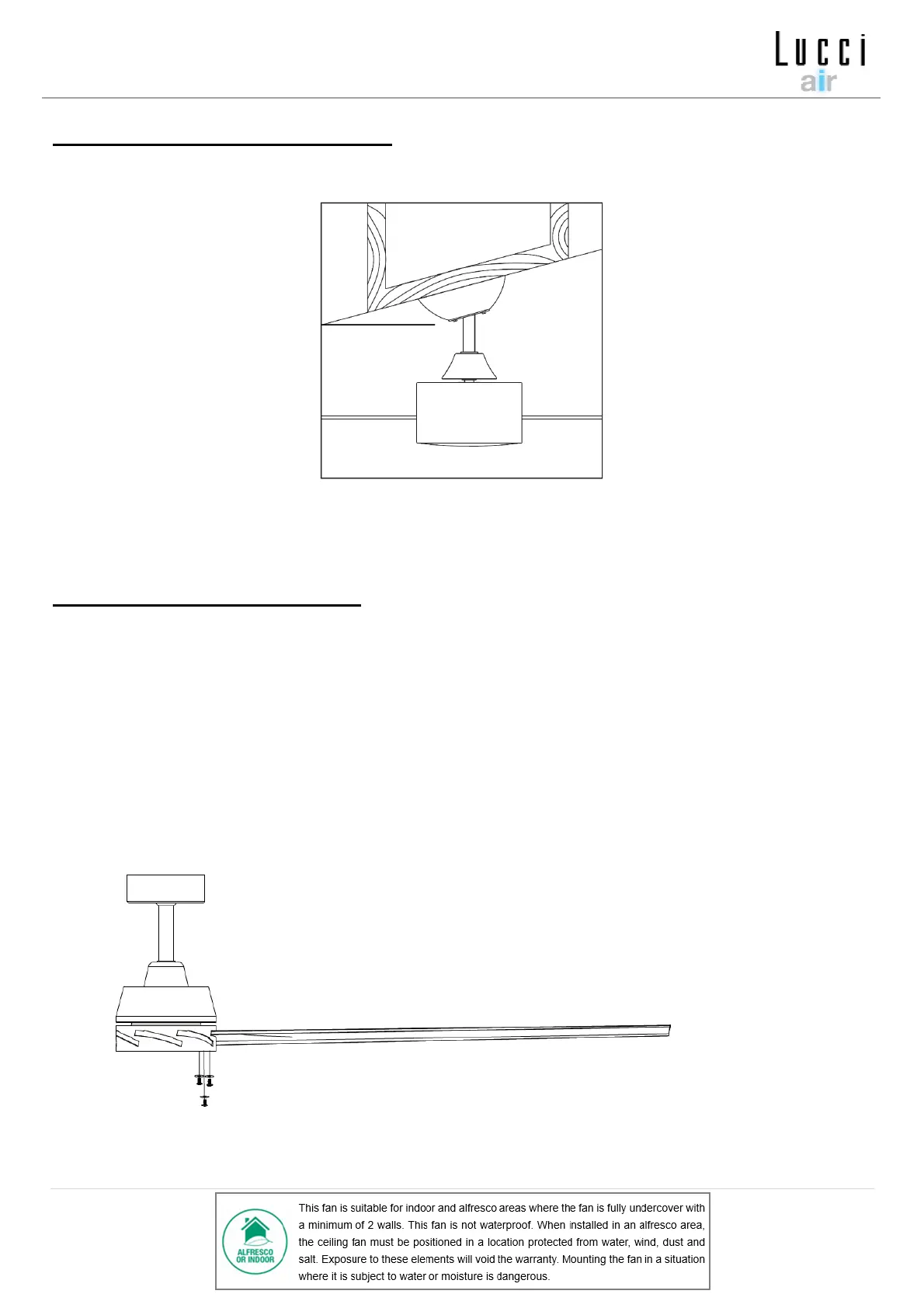 Este ventilador con sistema colgante puede ser instalado en un techo con una inclinación máxima de 9 grados.
