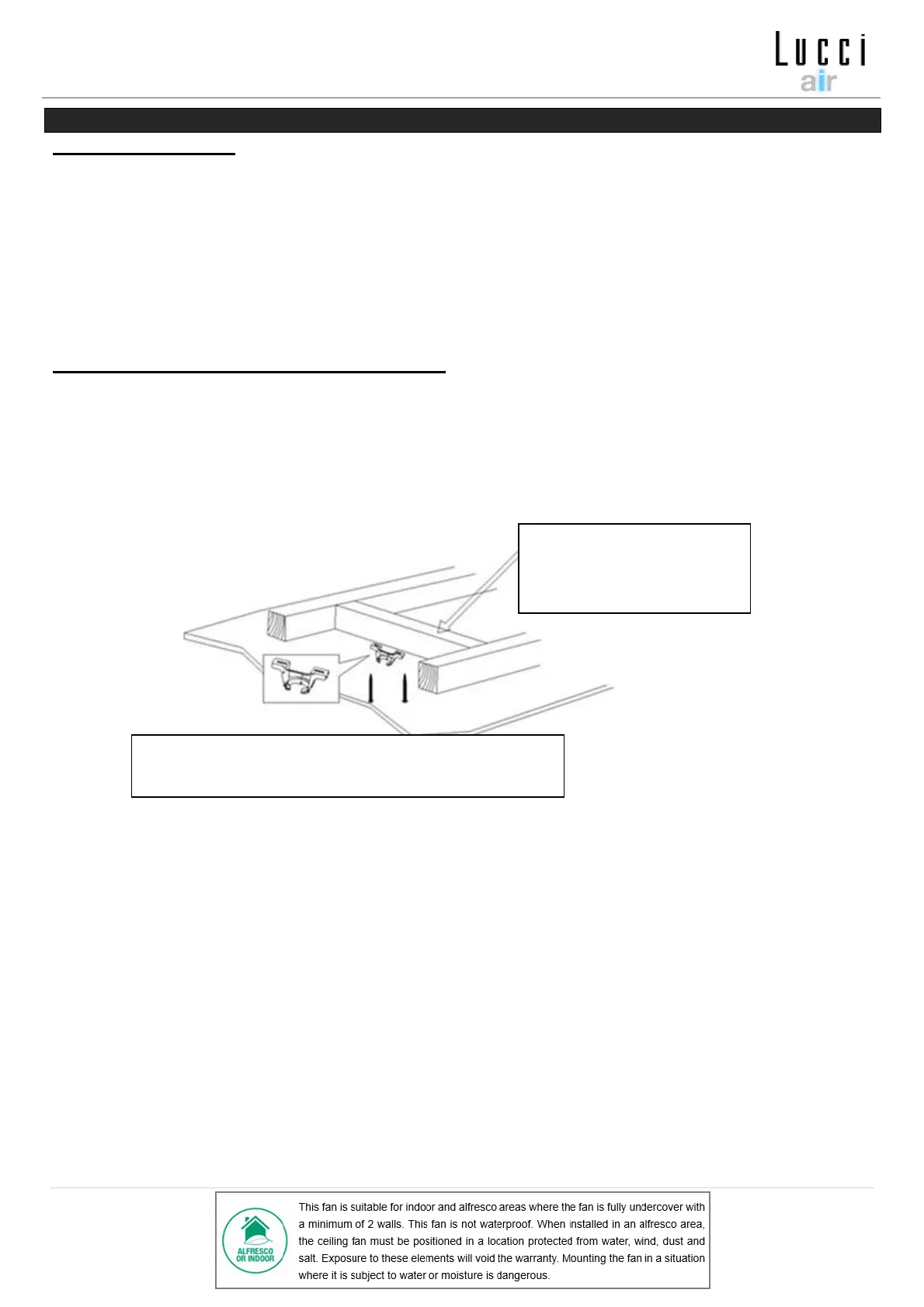 • Fissare la staffa di supporto a una struttura o una trave del soffitto in grado di sostenere un carico di almeno