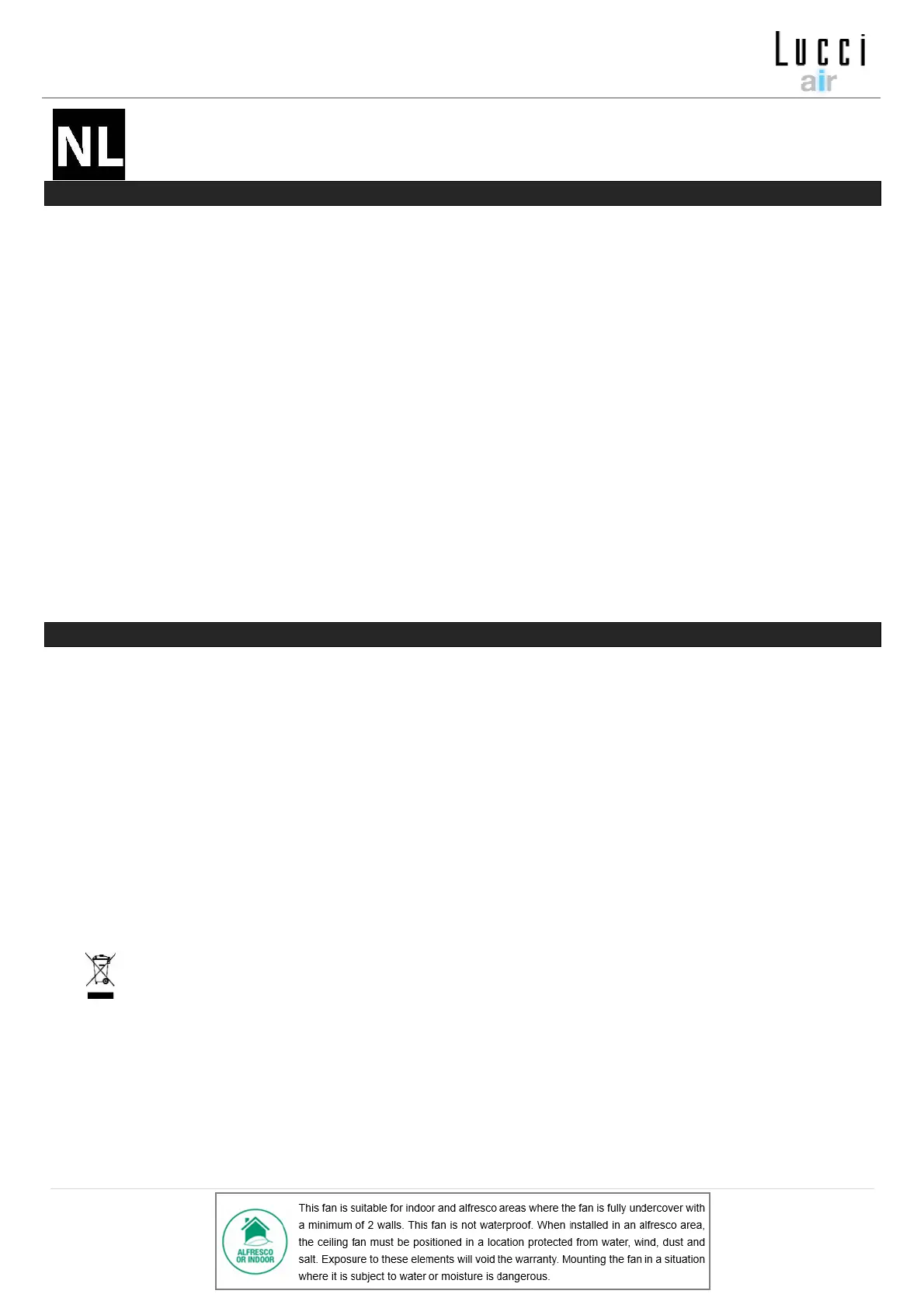 7. De ventilator moet zo worden gemonteerd dat de bladen zich minstens 2,3 m boven de vloer (Europa) of