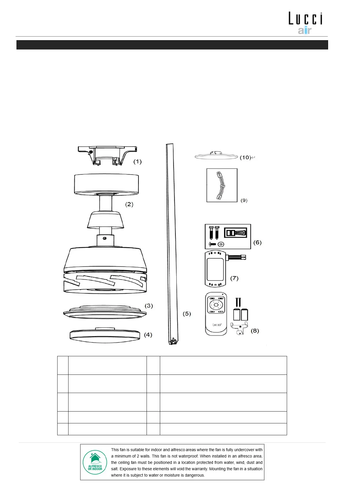 • Ελέγξτε μήπως ο ανεμιστήρας οροφής έχει υποστεί ζημιά κατά τη μεταφορά. Αν φαίνεται να υπάρχει