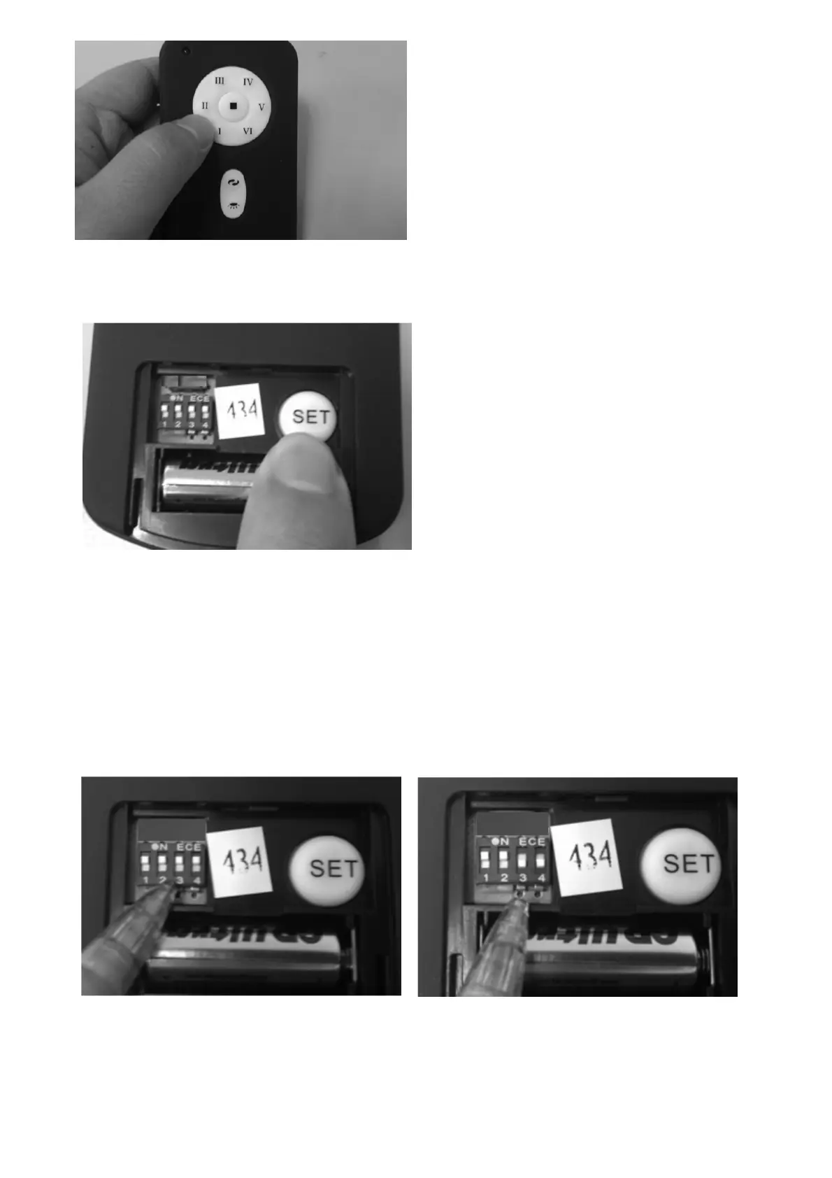 anschließend die Stromversorgung zu Empfänger wieder ein. Halten Sie nun die SET-Taste der Fernbedienung 6