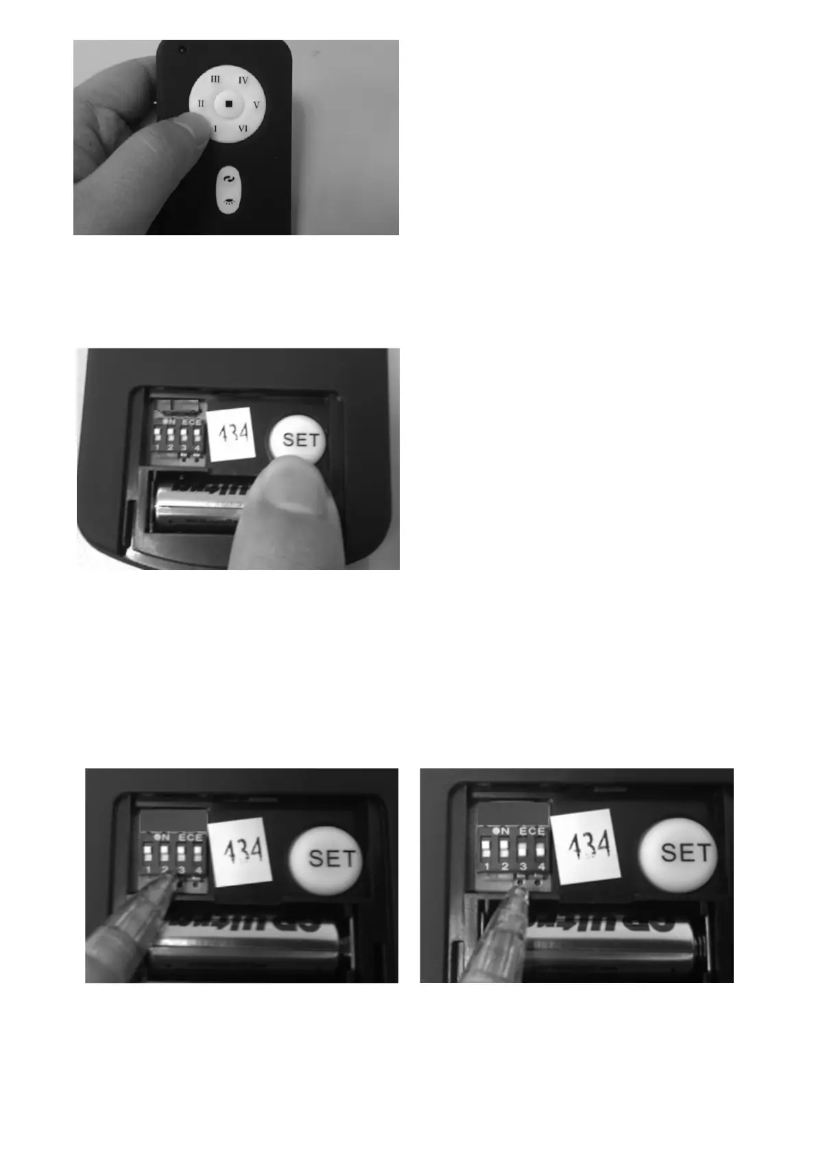 cambiar los interruptores DIP a cualquier posición de las 16 opciones. (Ej. arriba, arriba, abajo, abajo).