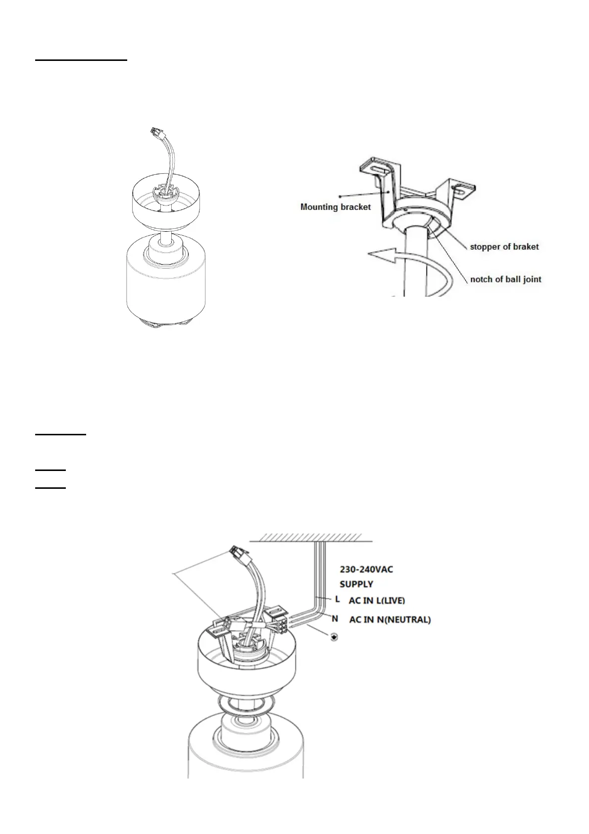 Ensure the notch of ball joint is positioned on the stopper of mounting bracket to prevent fan from rotating when in