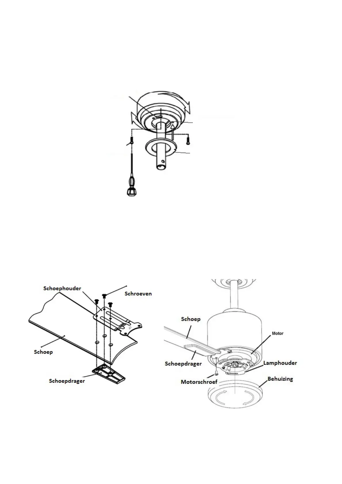 Bevestig de schoepenhouder aan de motor en schroef deze vast met de 2 motorschroeven. Afb. 9