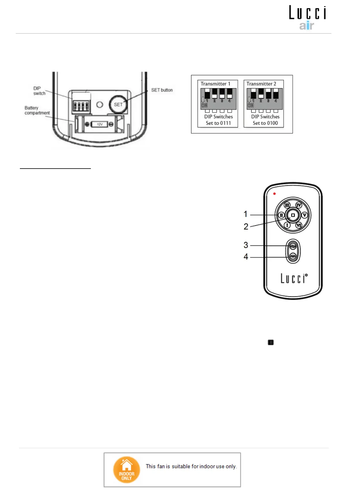 Note: The pairing of the transmitter and receiver is required if only one ceiling fan is installed.