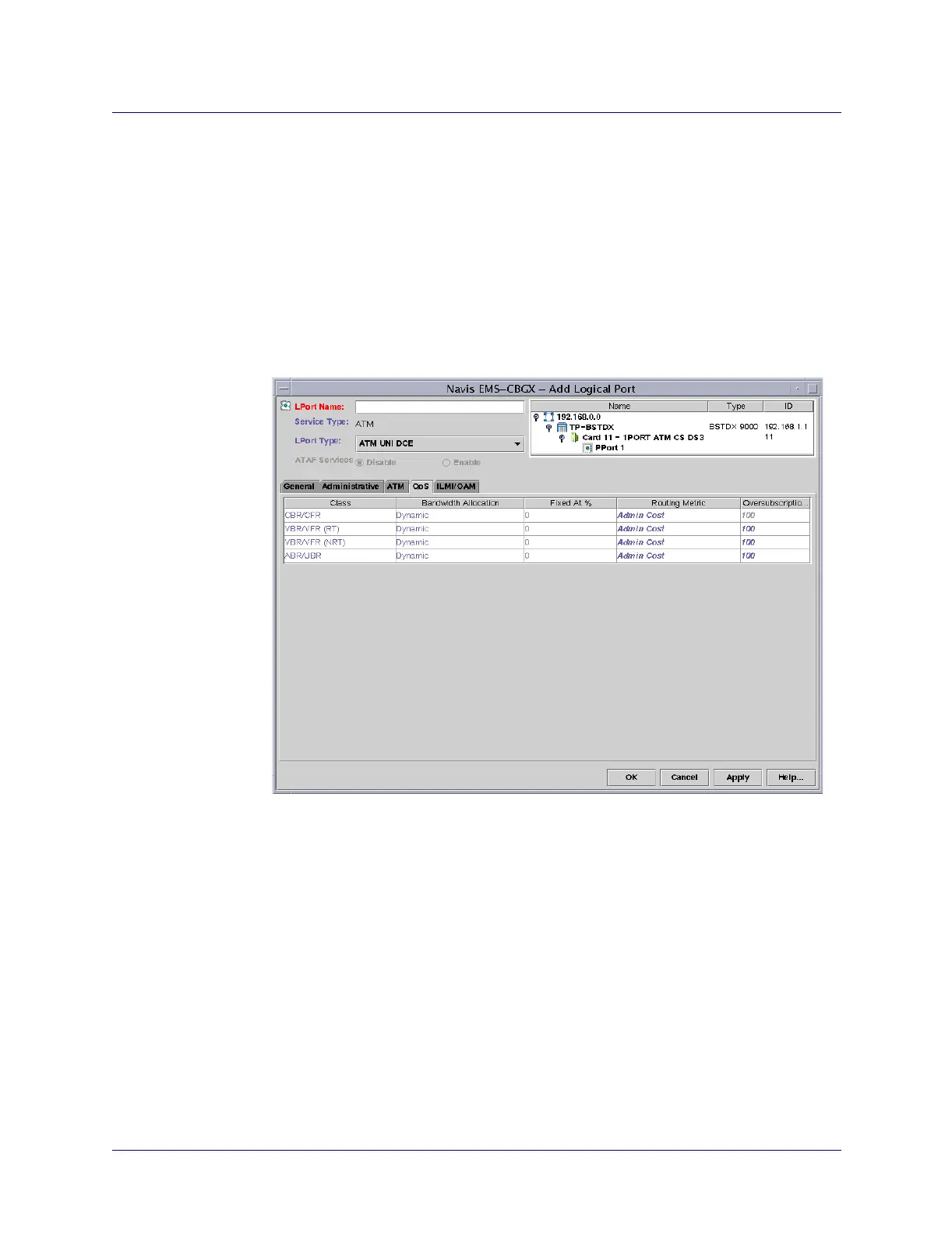 From the Add Logical Port dialog box (Figure 4-12), select the QoS tab.