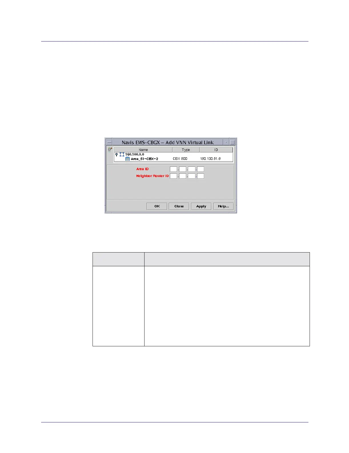 Table 7-10. Add VNN Virtual Link Dialog Box Fields