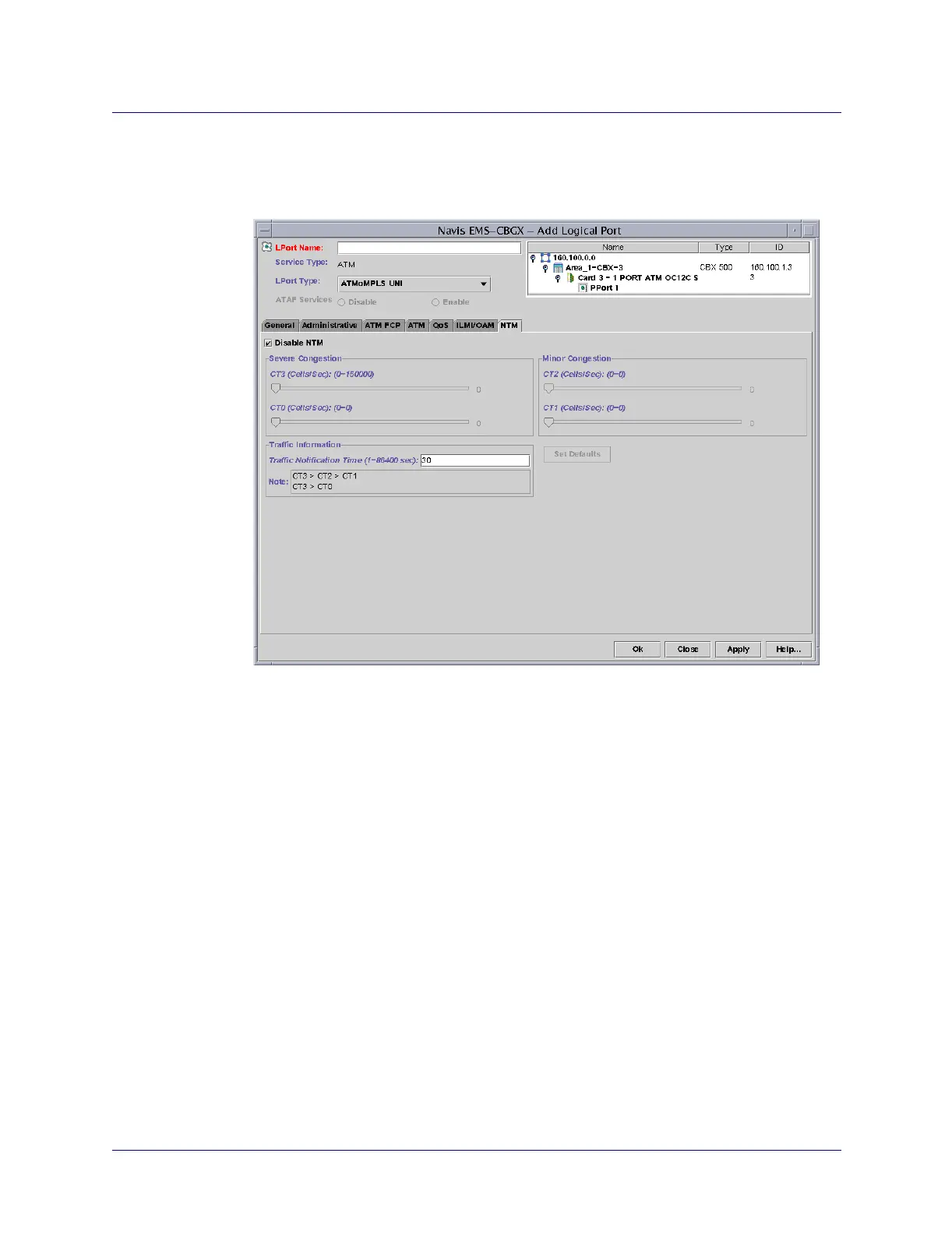 The NTM tab in the Add Logical Port dialog box is shown in Figure 8-16.