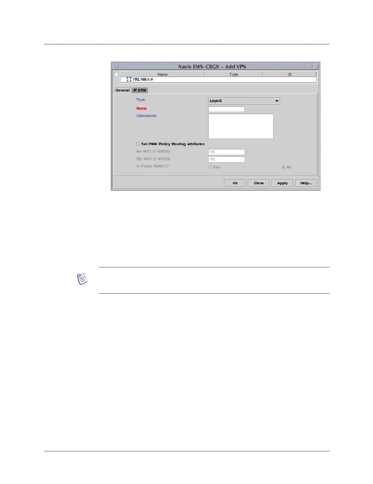 5. Complete the fields in the General tab of the Add VPN dialog box, as described in