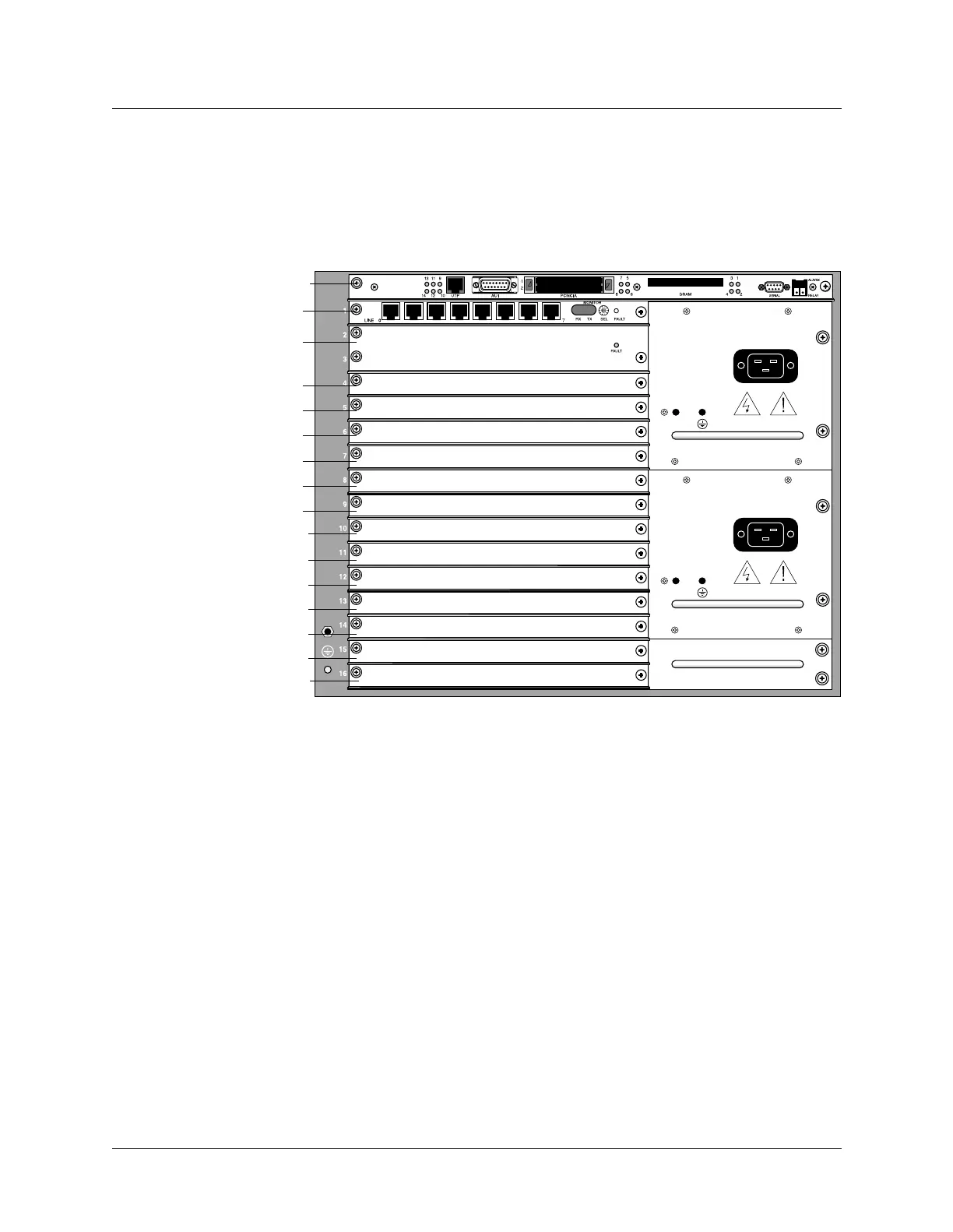 Figure 2-2 shows the back panel of a MAX TNT unit. The shelf controller is always slot 17.