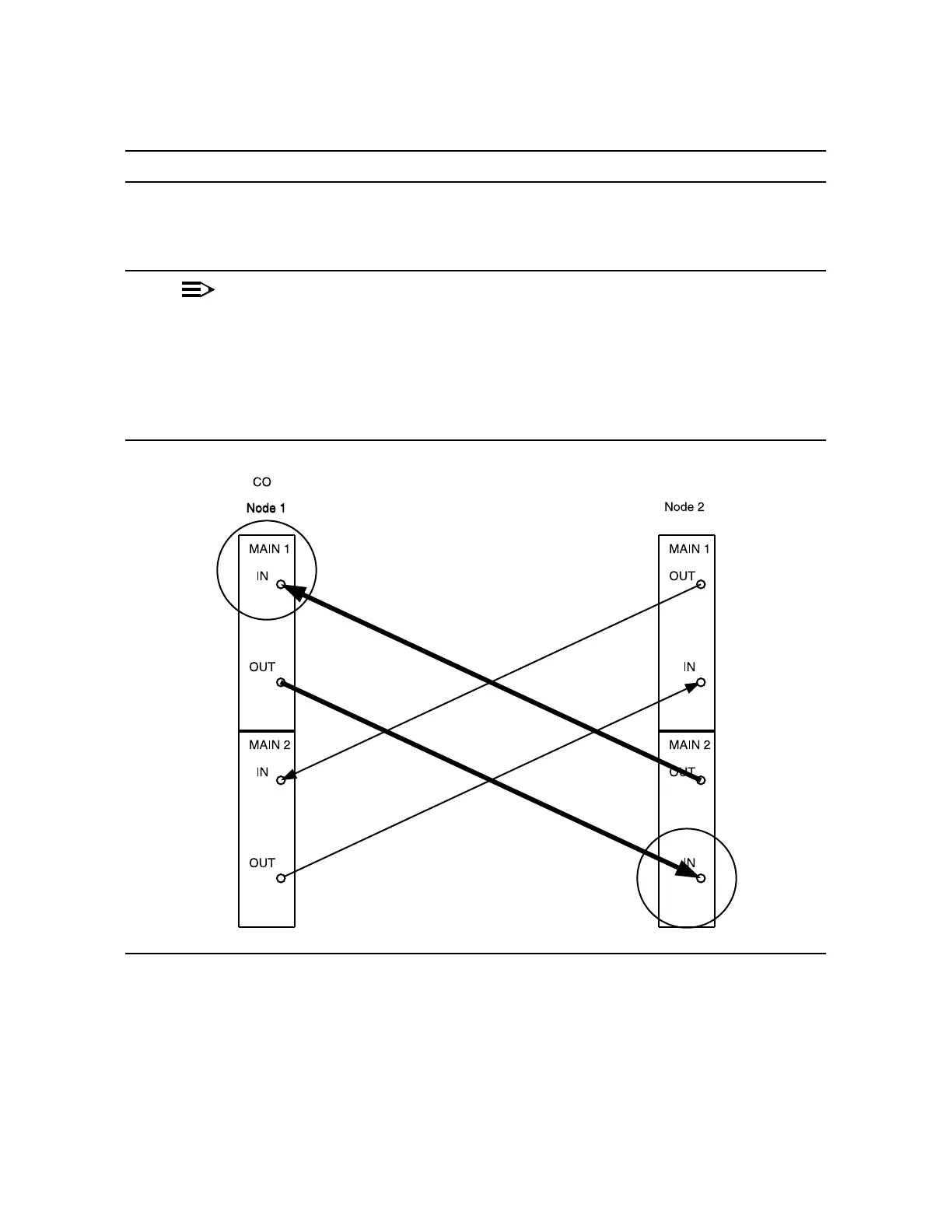 optical fiber from Node 2 MAIN 1 OUT to Node 1 MAIN 2(P) IN.