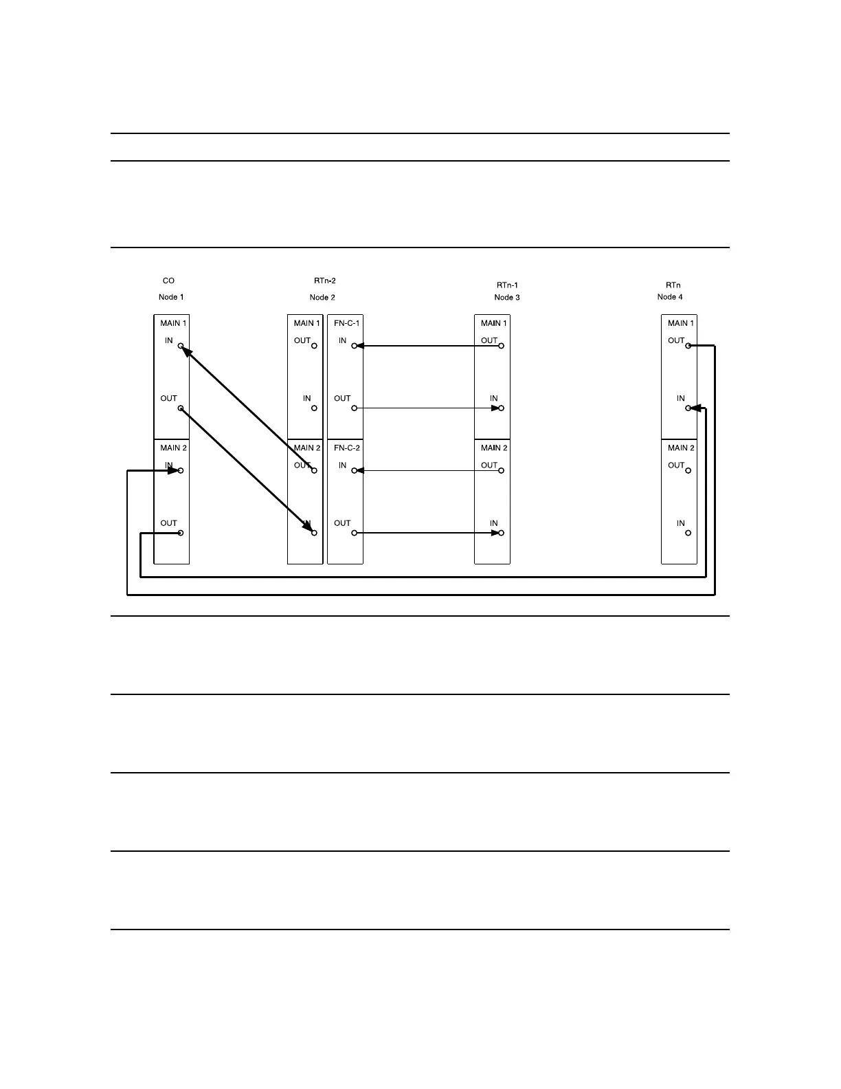(RTn) MAIN 2(P) IN. Connect optical fiber from Node 3 (RTn-1)