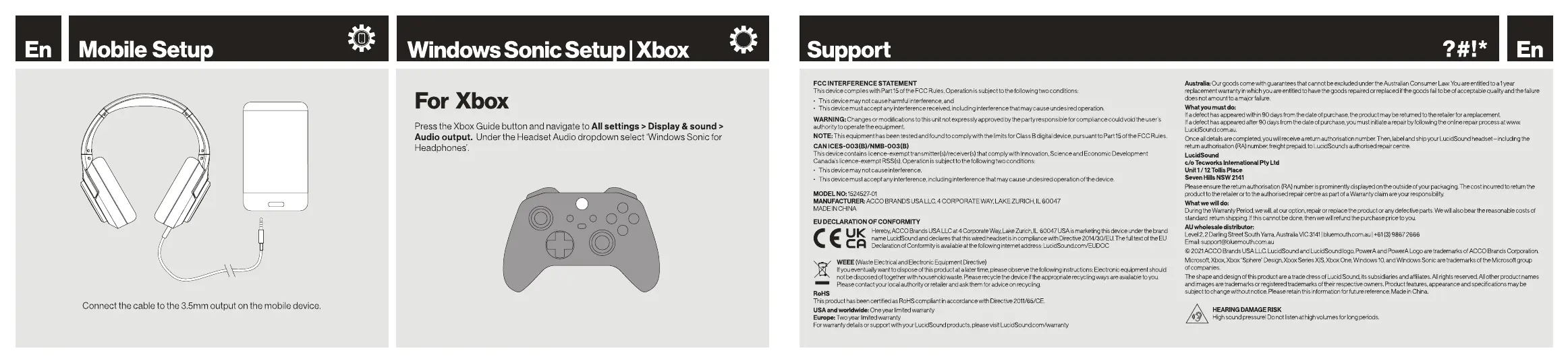 LucidSound LS10X - Mobile Device Setup; Windows Sonic Setup for Xbox; Product Support and Warranty