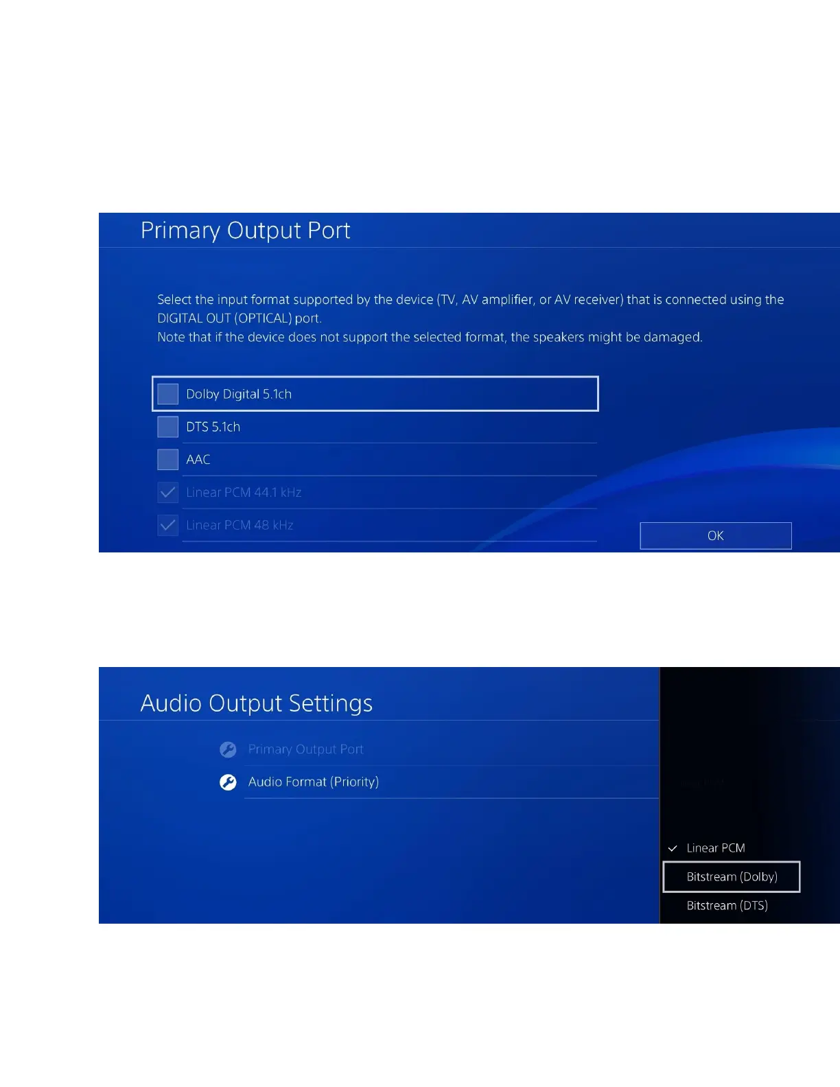 10. When you return to the Audio Output Settings screen, select Audio Format (Priority) and