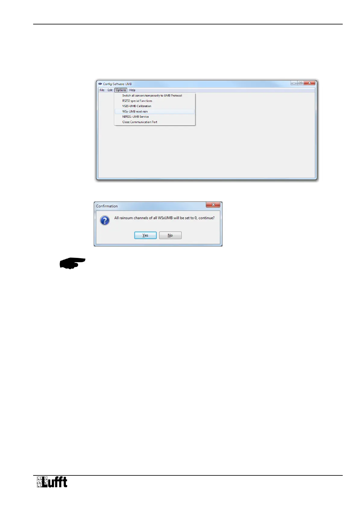 To reset the accumulated absolute precipitation quantity the UMB-Config-Tool offers the