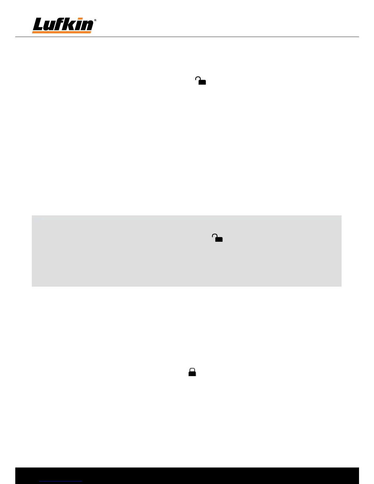 Note: Always unlock the pendulum lock when the LR510 is being used for horizontal