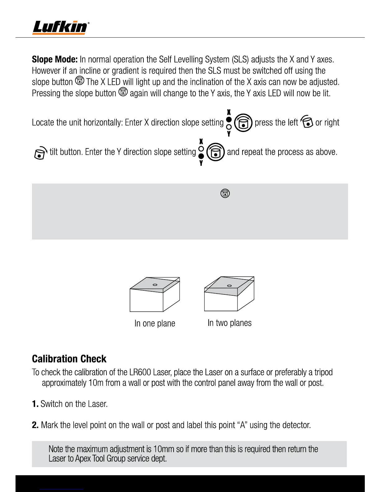 Lufkin LR600 - Slope Mode Operation; Calibration Procedures; Calibration Check