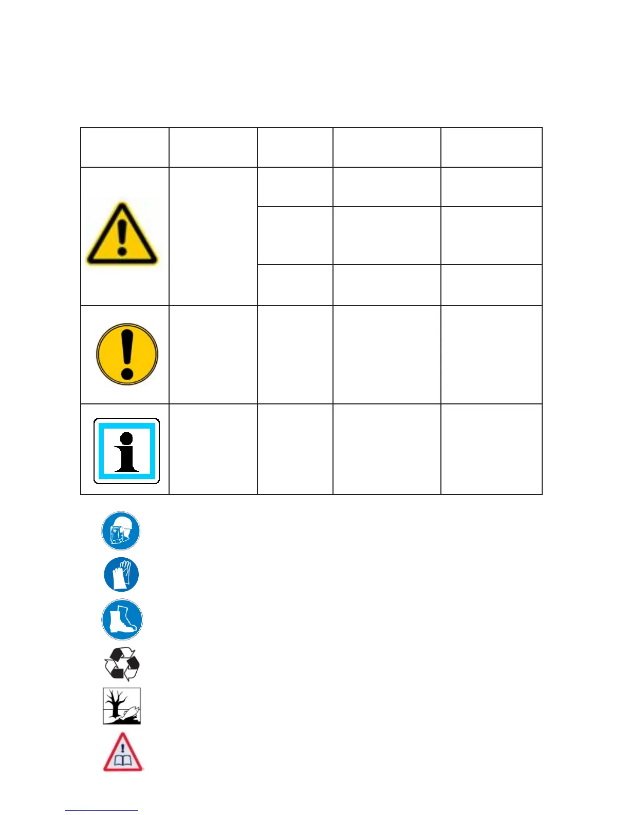 Wedi󰀨erentiatebetweenvariousdi󰀨erentcategoriesofsafetyinstructions.Thetableshown