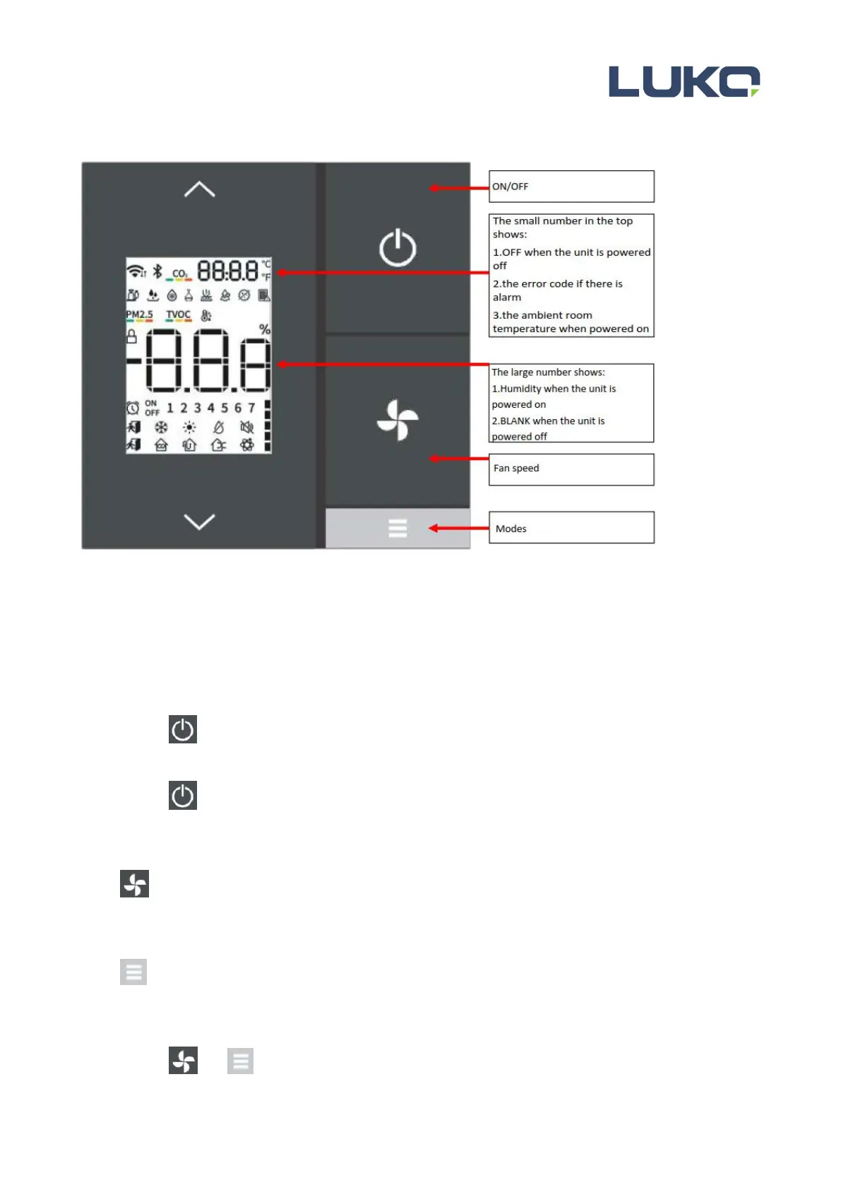 *Short press to turn on/off the controller: the small OFF appear in the top when the unit is