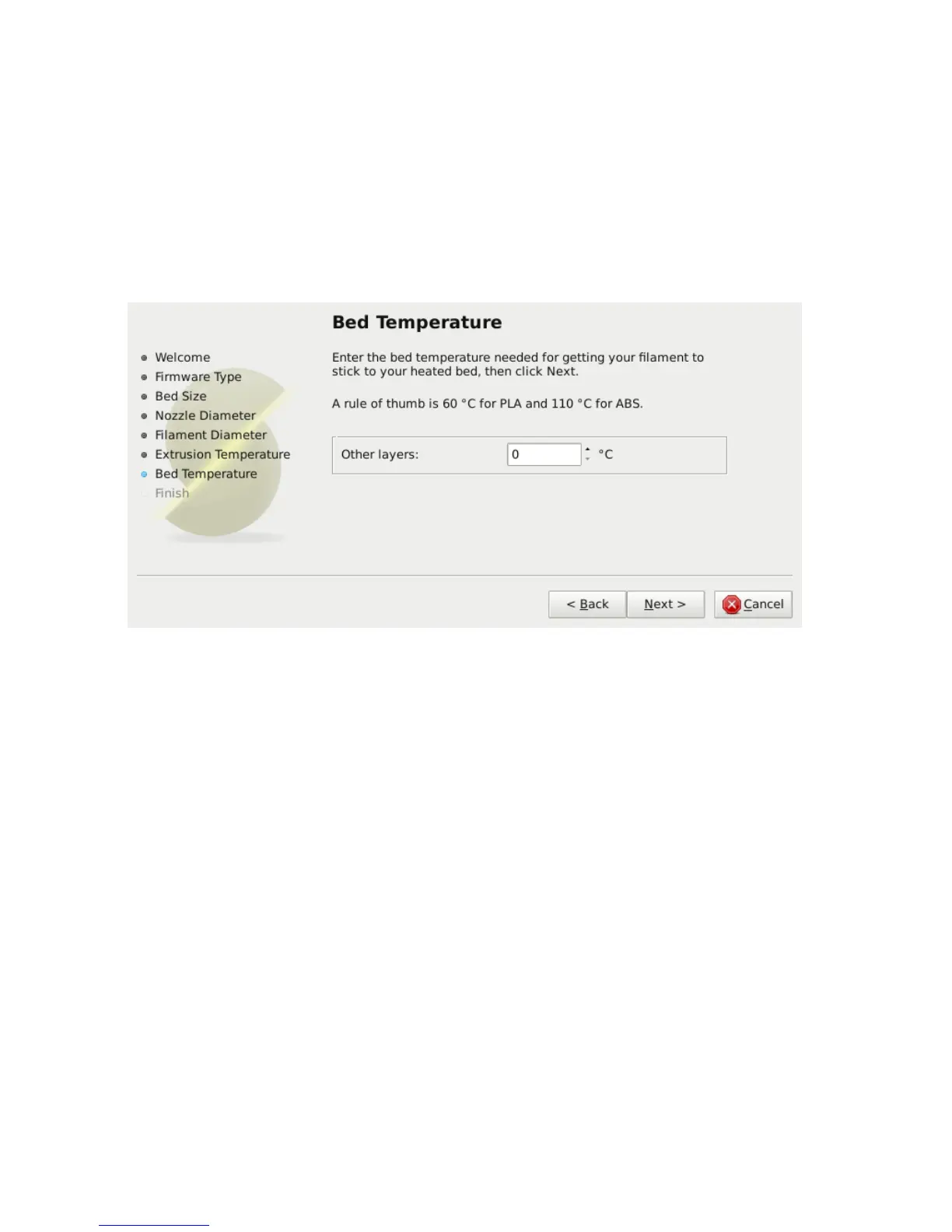 Figure 2.7: Conguration Wizard: Bed Temperature