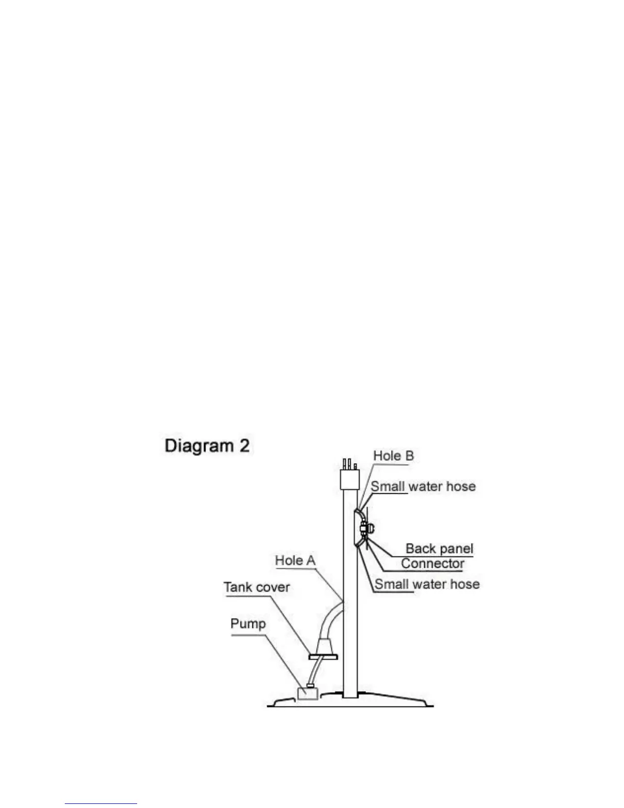and 1 electric wire connected to the water pump. Thread the hoses and