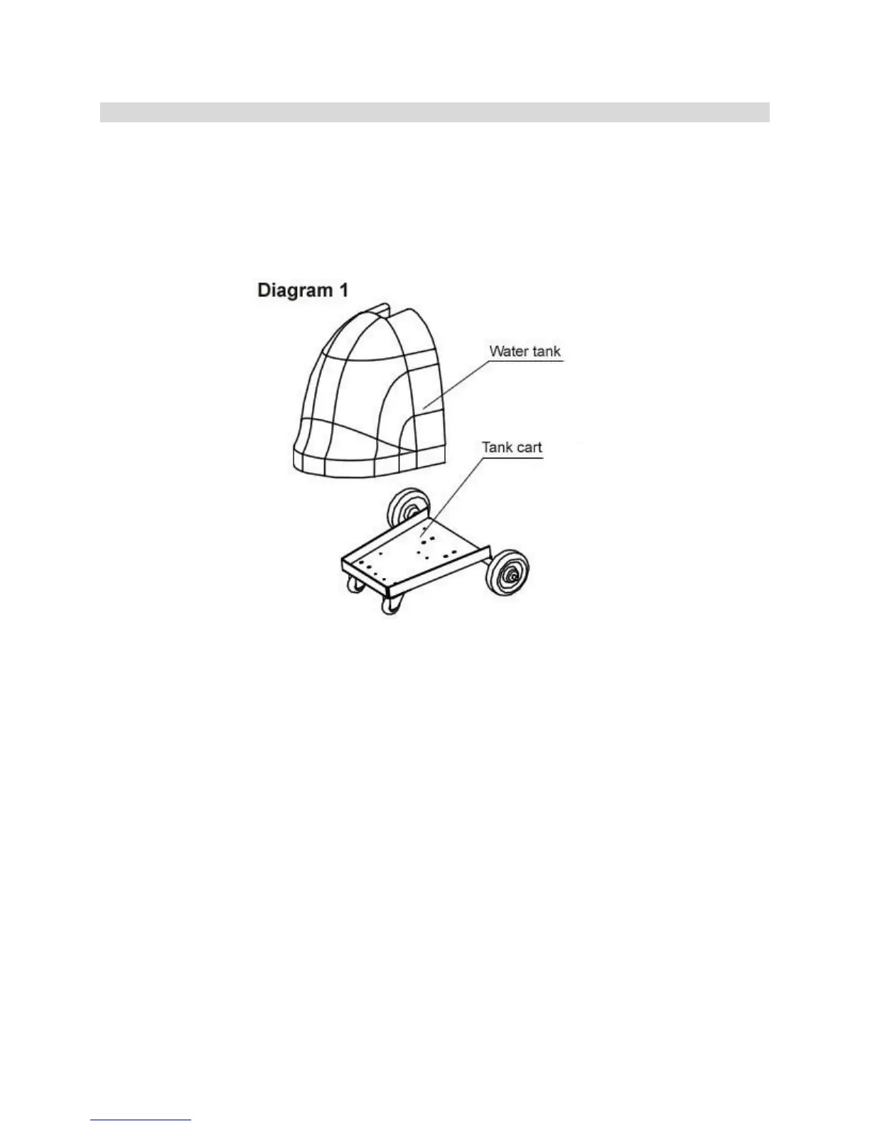 Refer to diagram 1. Carefully remove the water tank from the tank cart.