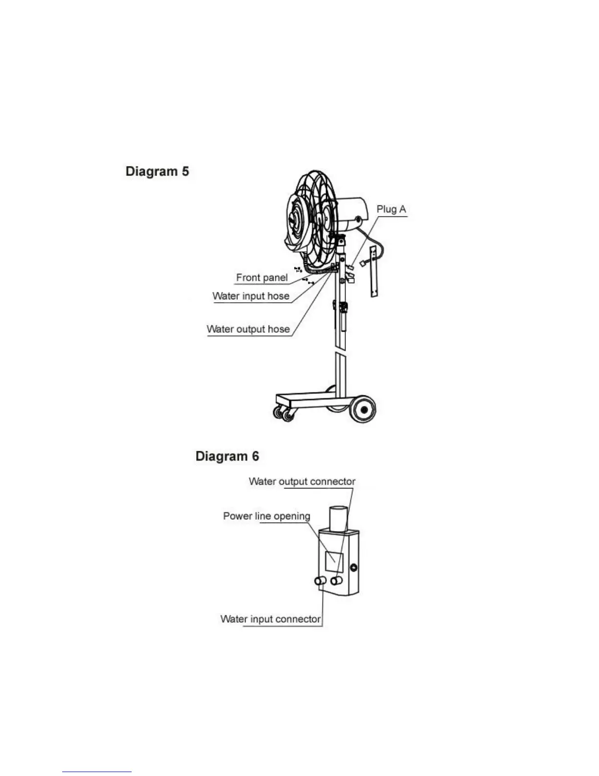 a. Refer to diagrams 5 and 6. Insert the power line that is connected to the fan head into the power