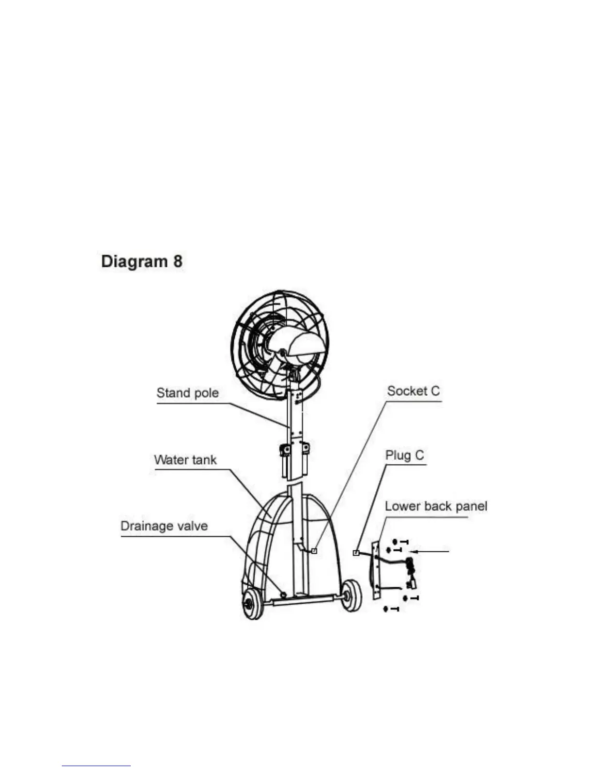 a. Refer to diagram 8. Place the water tank on the tank shelf.