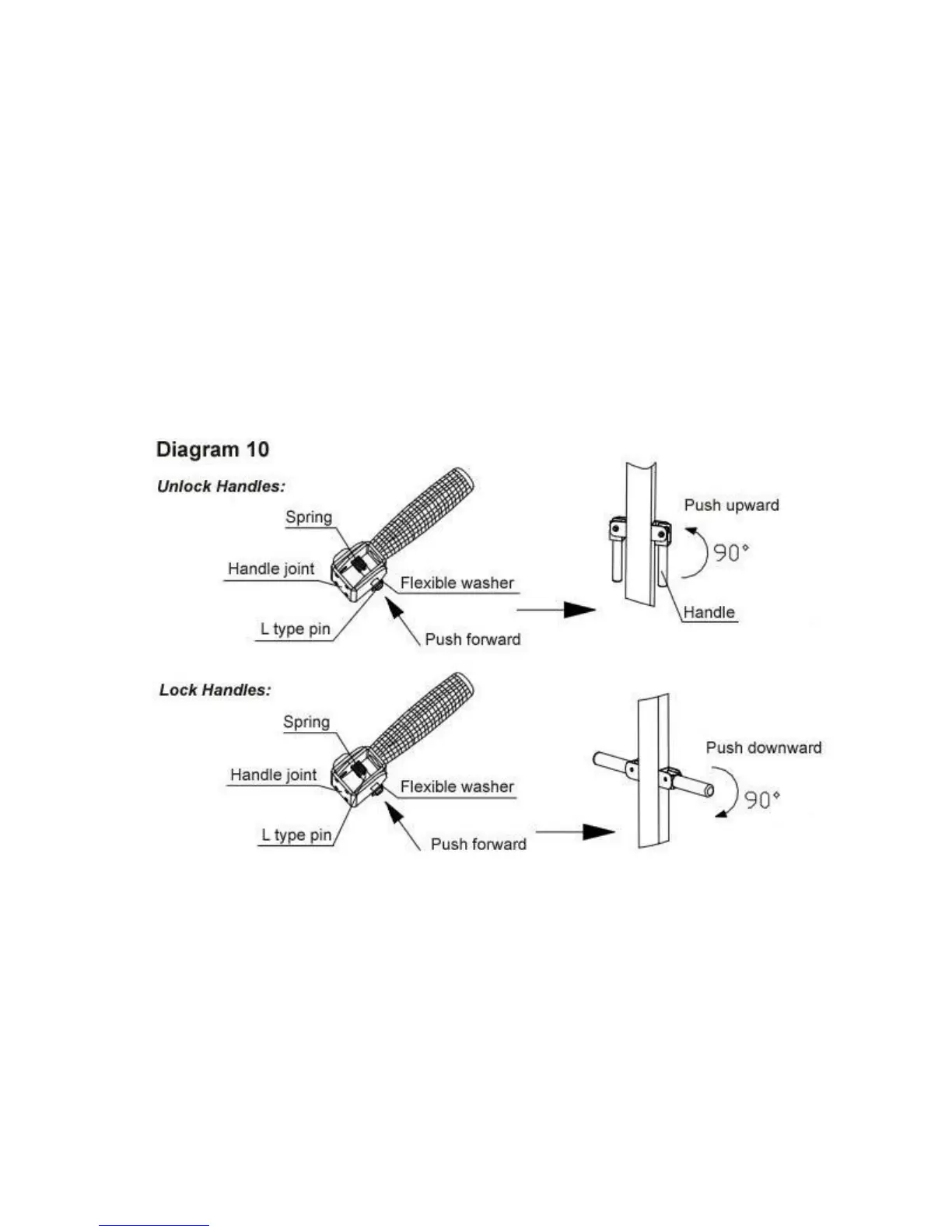 a. Refer to diagram 10. To unlock the handles, push the L type pin on the