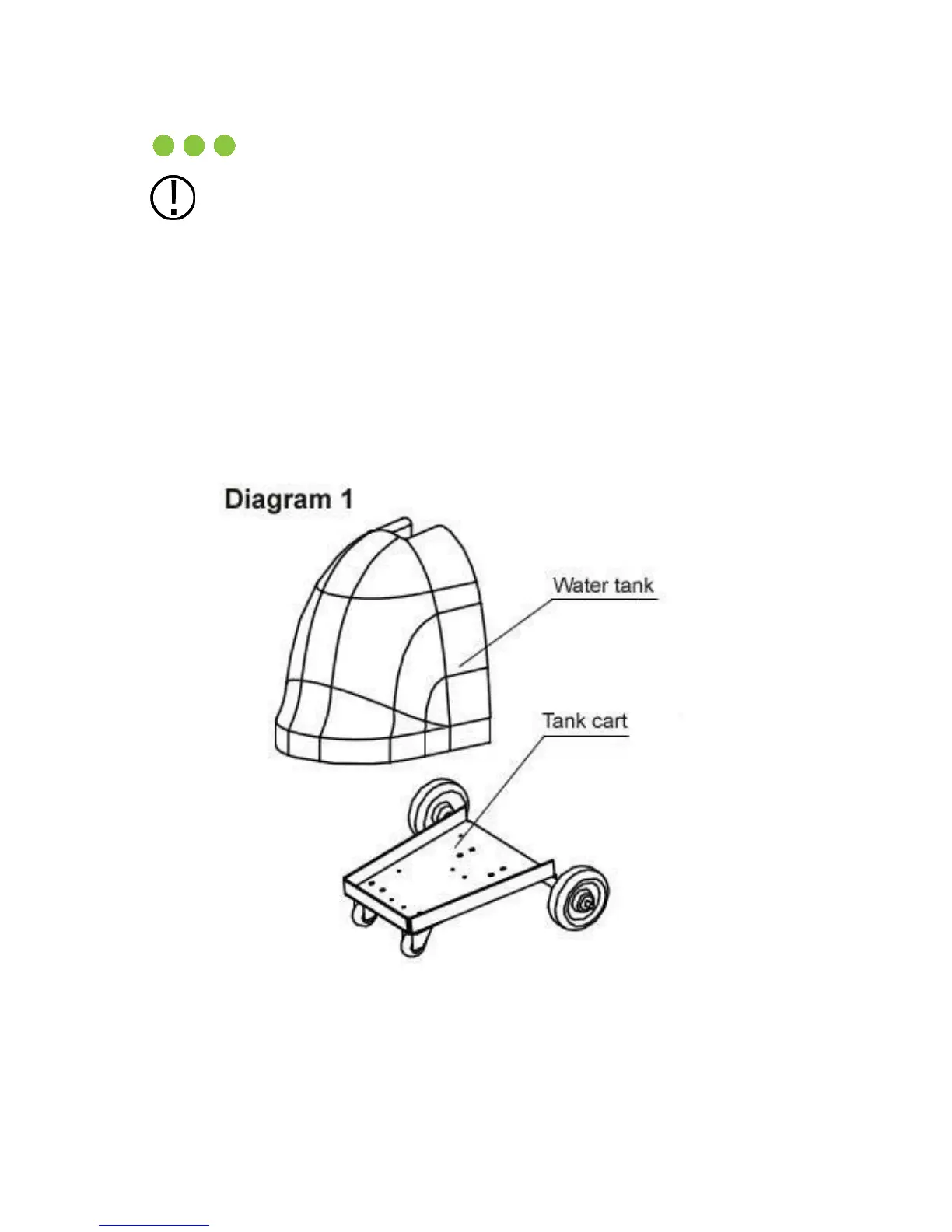 Refer to diagram 1. Carefully remove the water tank from the tank cart.