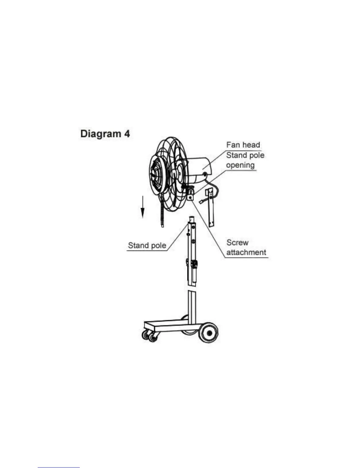 b. Align the stand pole opening on the bottom of the fan head with the stand