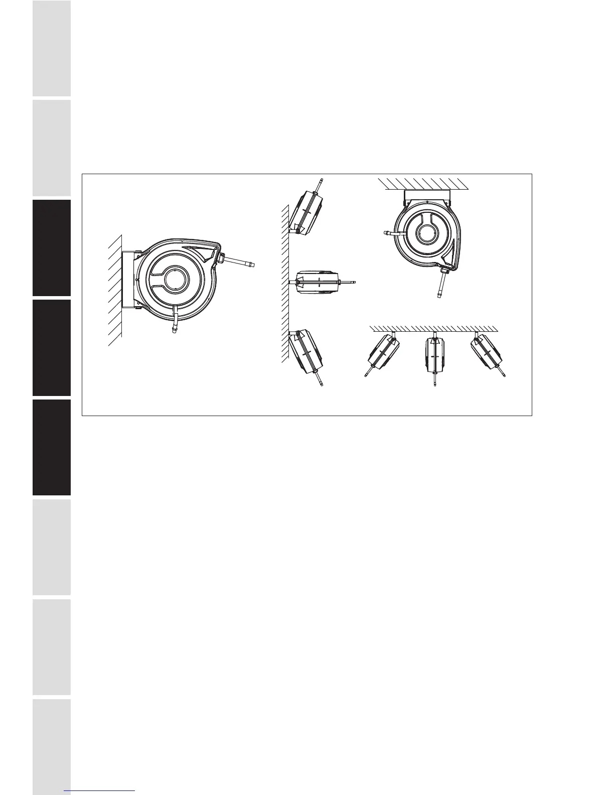 3. Secure the cord reel to the wall and the ceiling according to the installation diagrams.Using