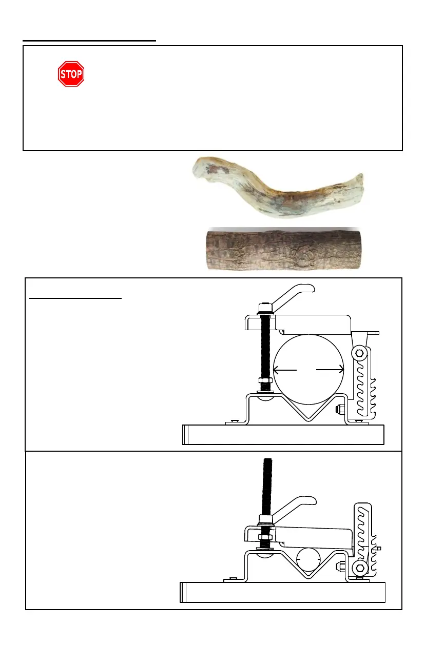 ● Avoid clamping on knots and uneven points on log