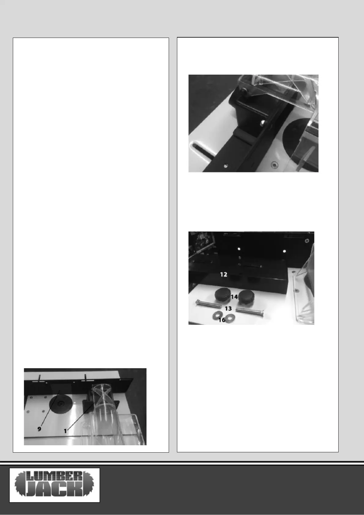 – Take Fence Base (9) and extractor hood (1).