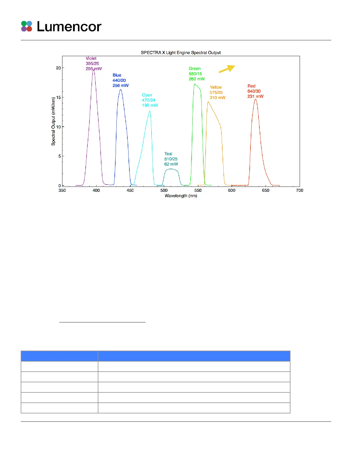 conditions specified below. Performance specifications for individual light engines are listed on the