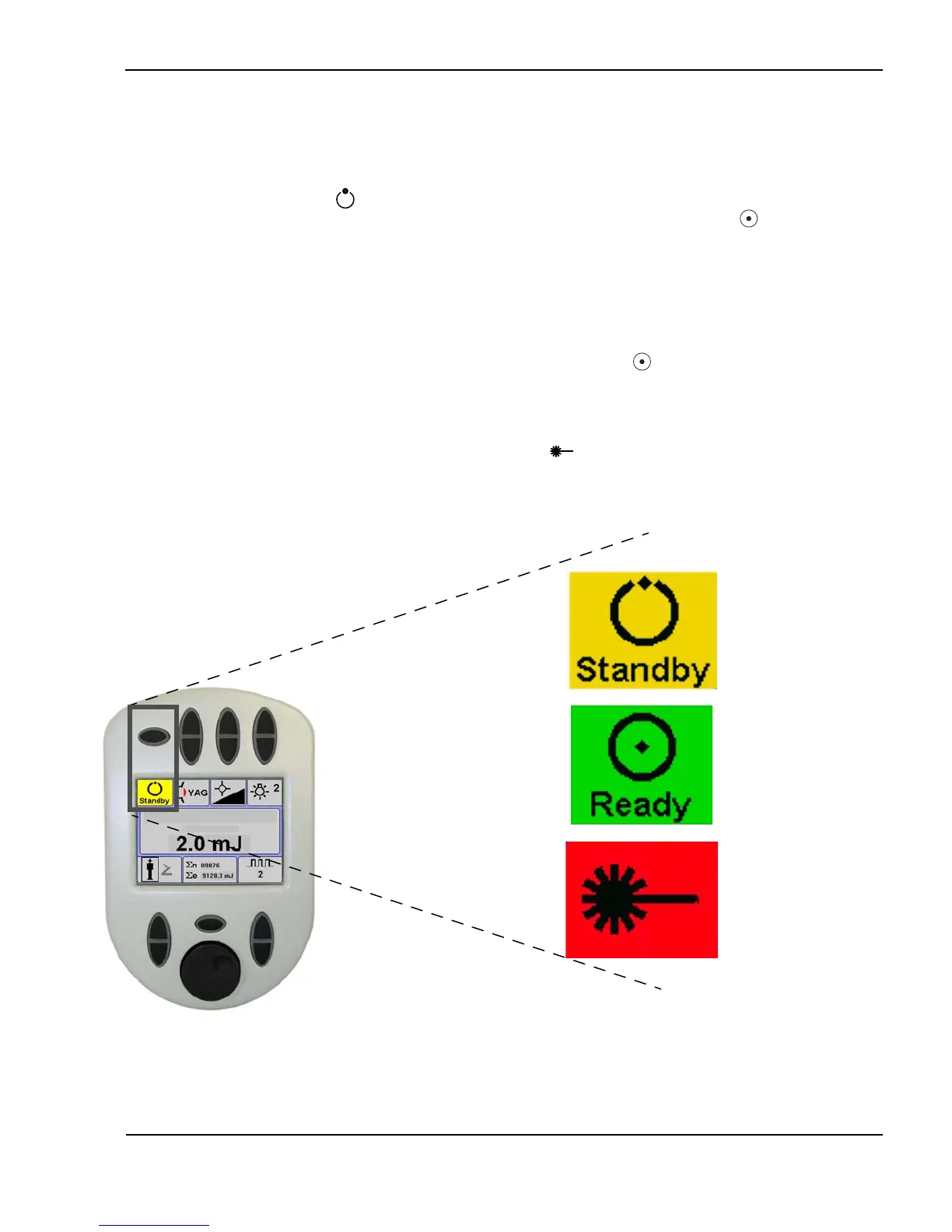 To commence treatment, the clinician depresses the Standby/Ready toggle