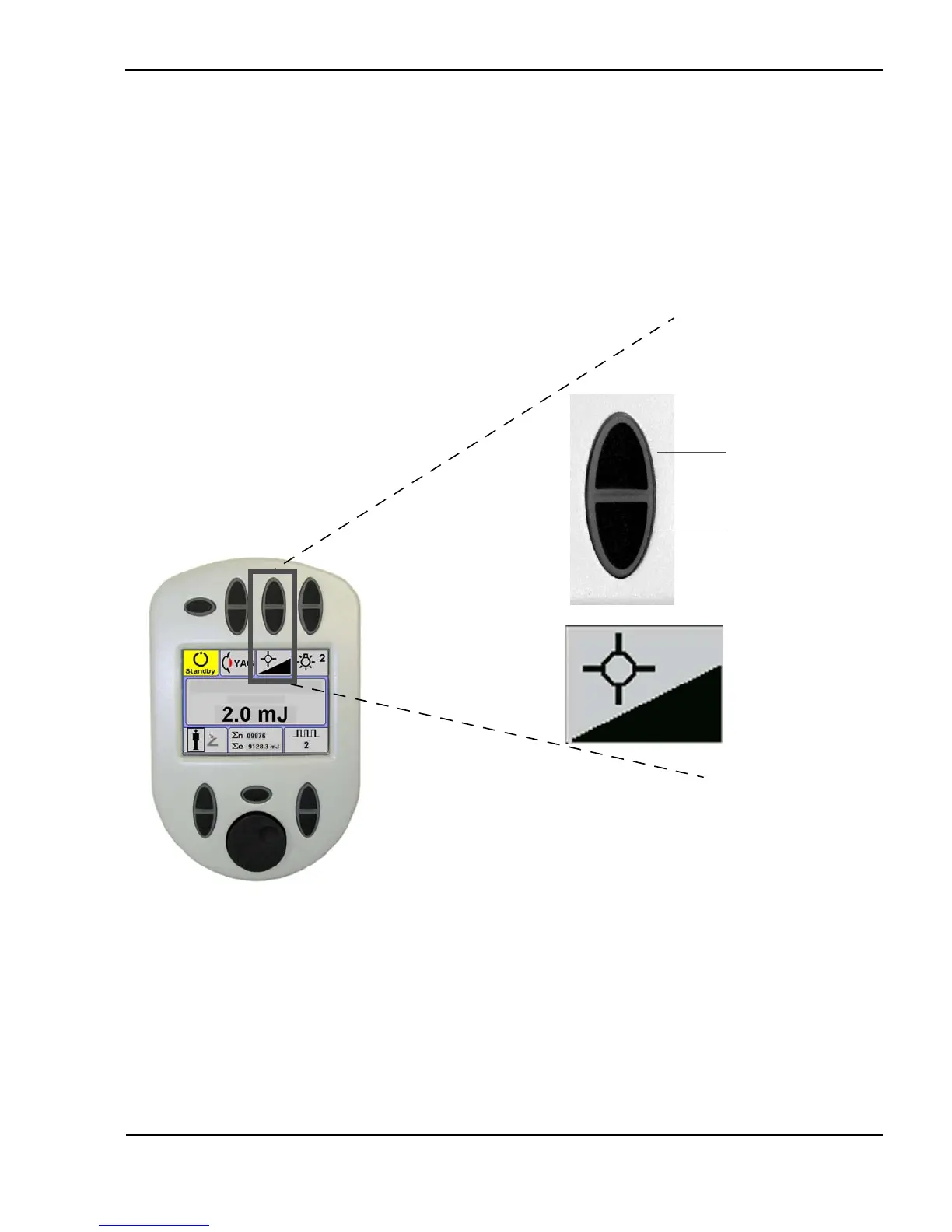 decrease the intensity, press the lower portion of the button. To increase the