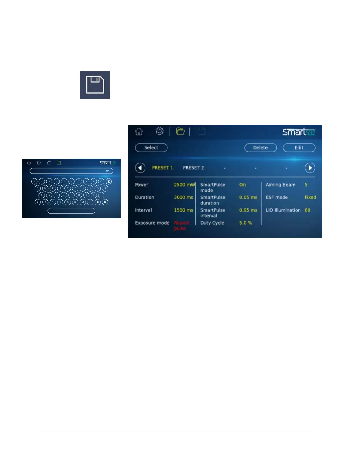 Adjust the treatment parameters on the touch-screen – power, exposure