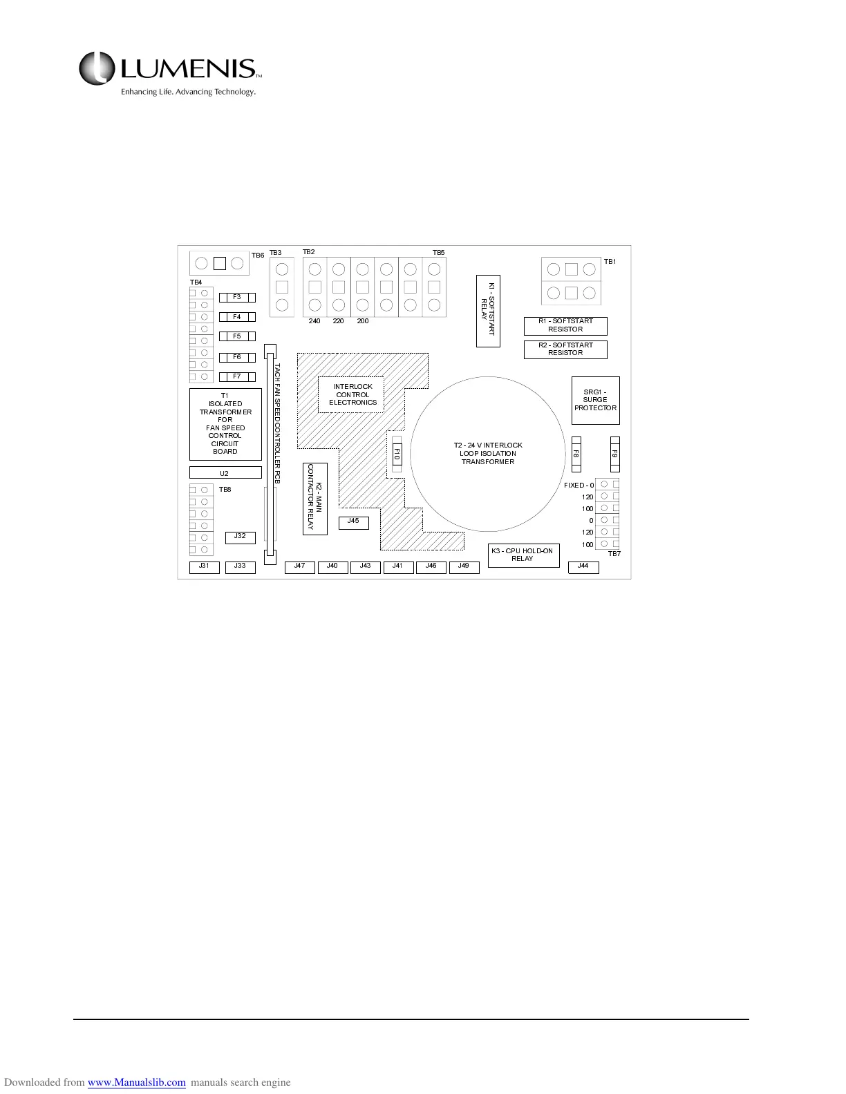 b. For mains voltage in 211 - 230 VAC range, jumper TB7: 1-3, 5-6.