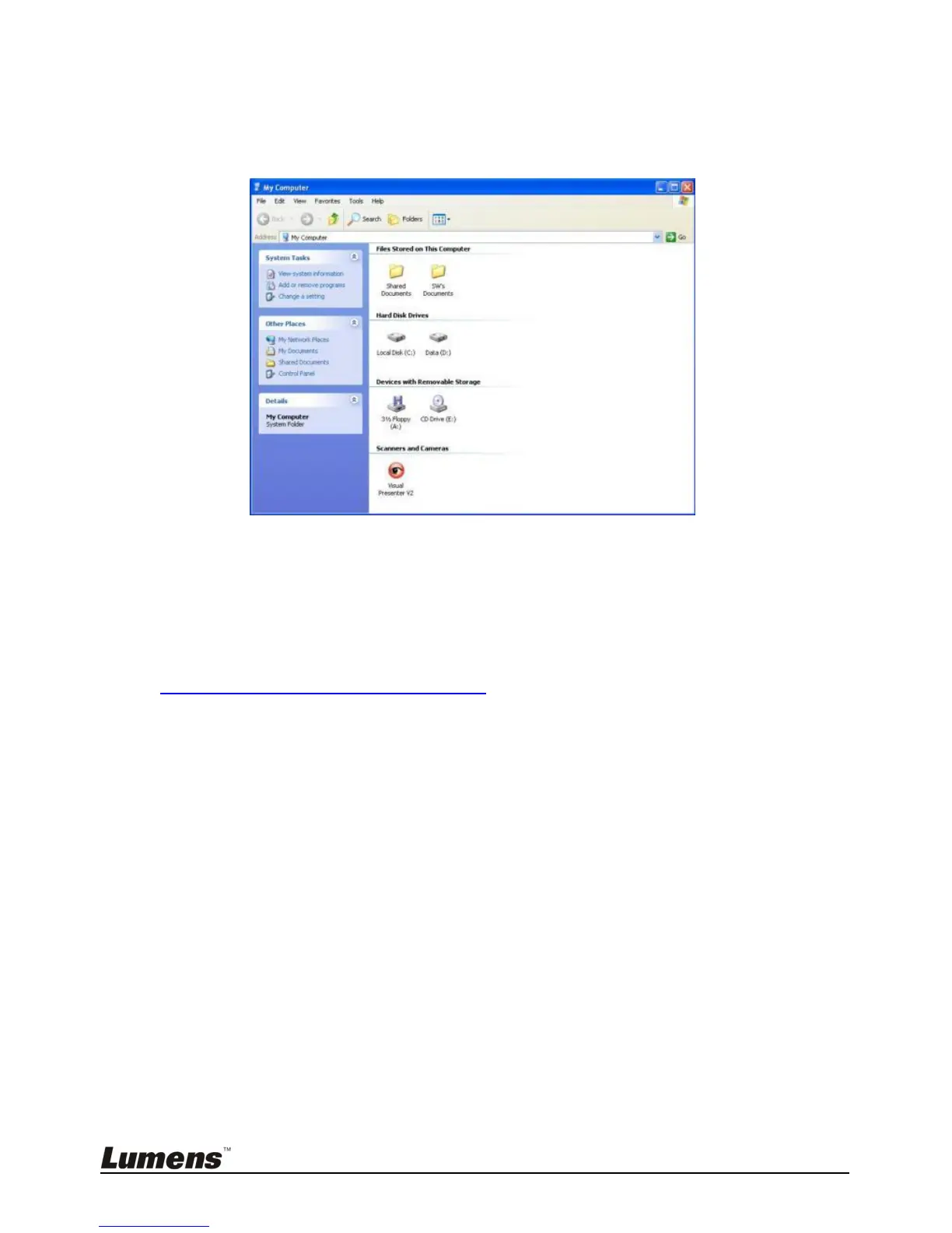 1. Open My Computer and click on [Visual Presenter V2] to display a live