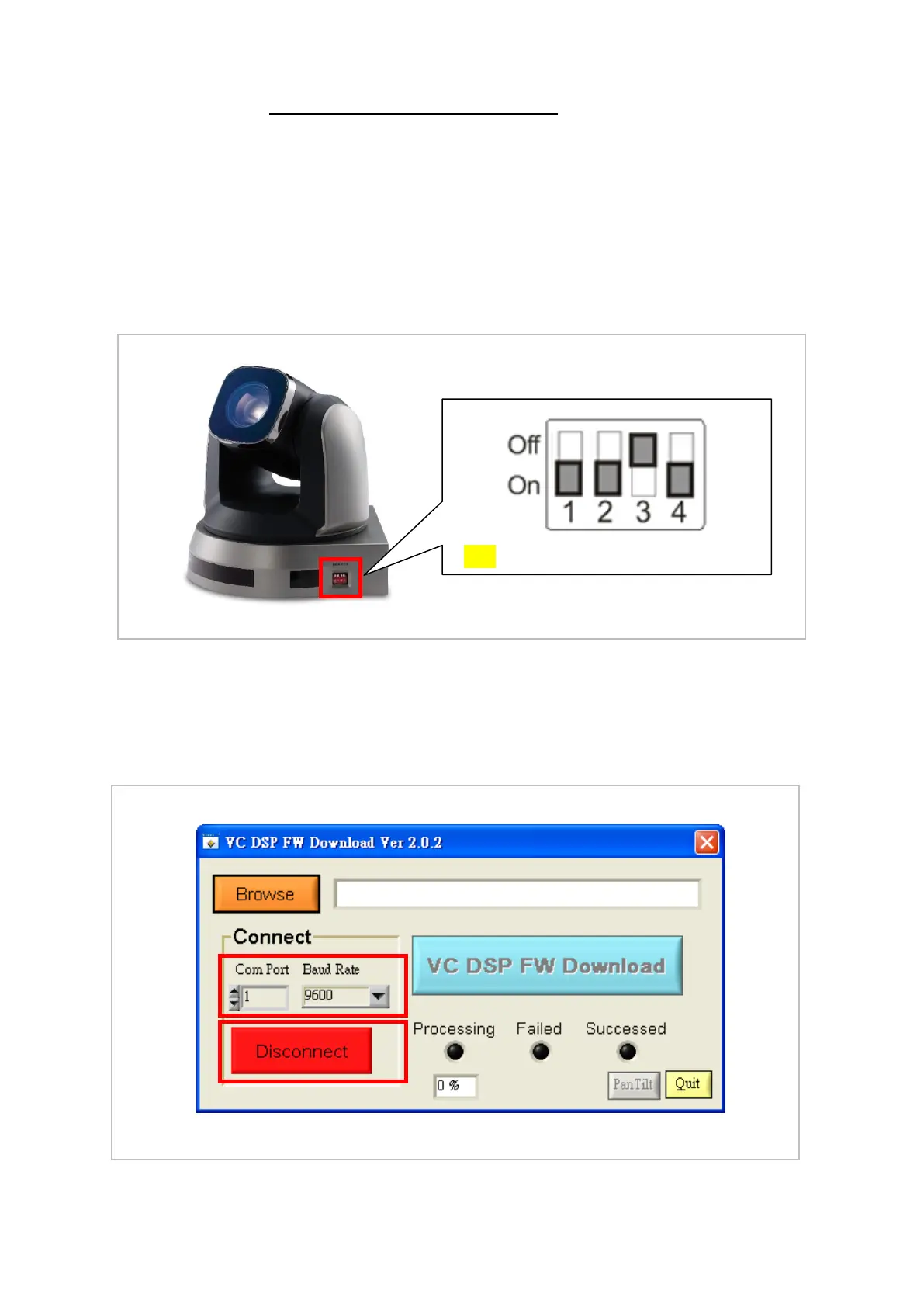 8.3 After connecting, set the DIP Switch 1,2,4 ON for the PAN motor.