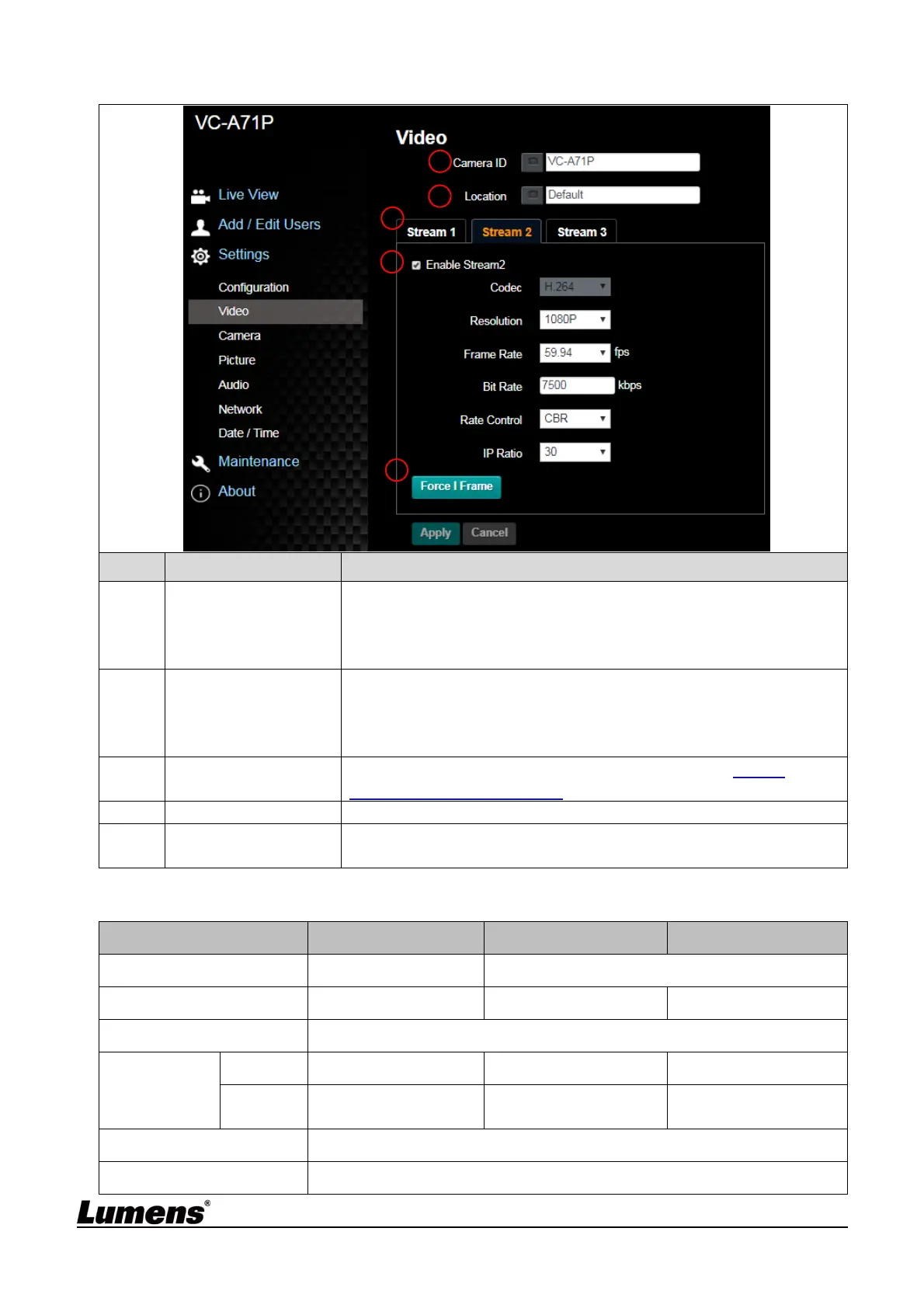 VC-A71P supports 3 streaming outputs. Please refer to 6.2.5.1