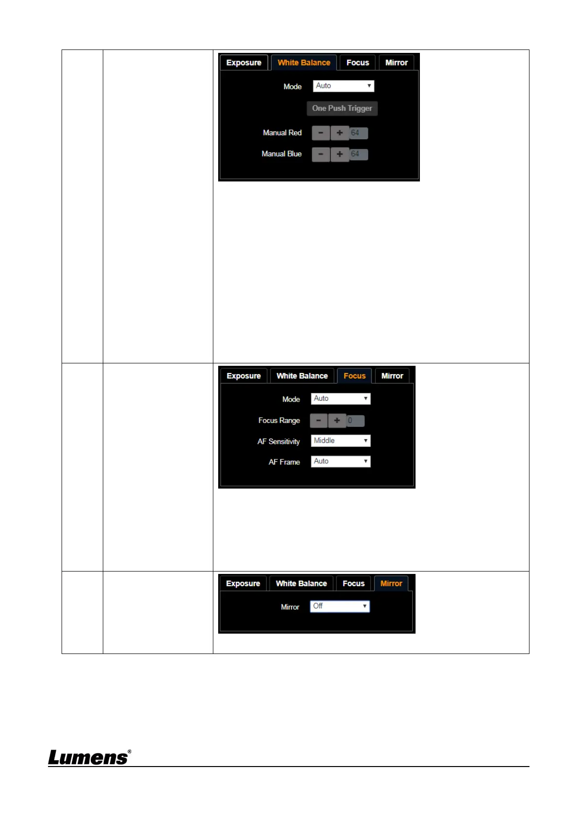 Manual Red/Blue: Manually adjust blue/red color temperature