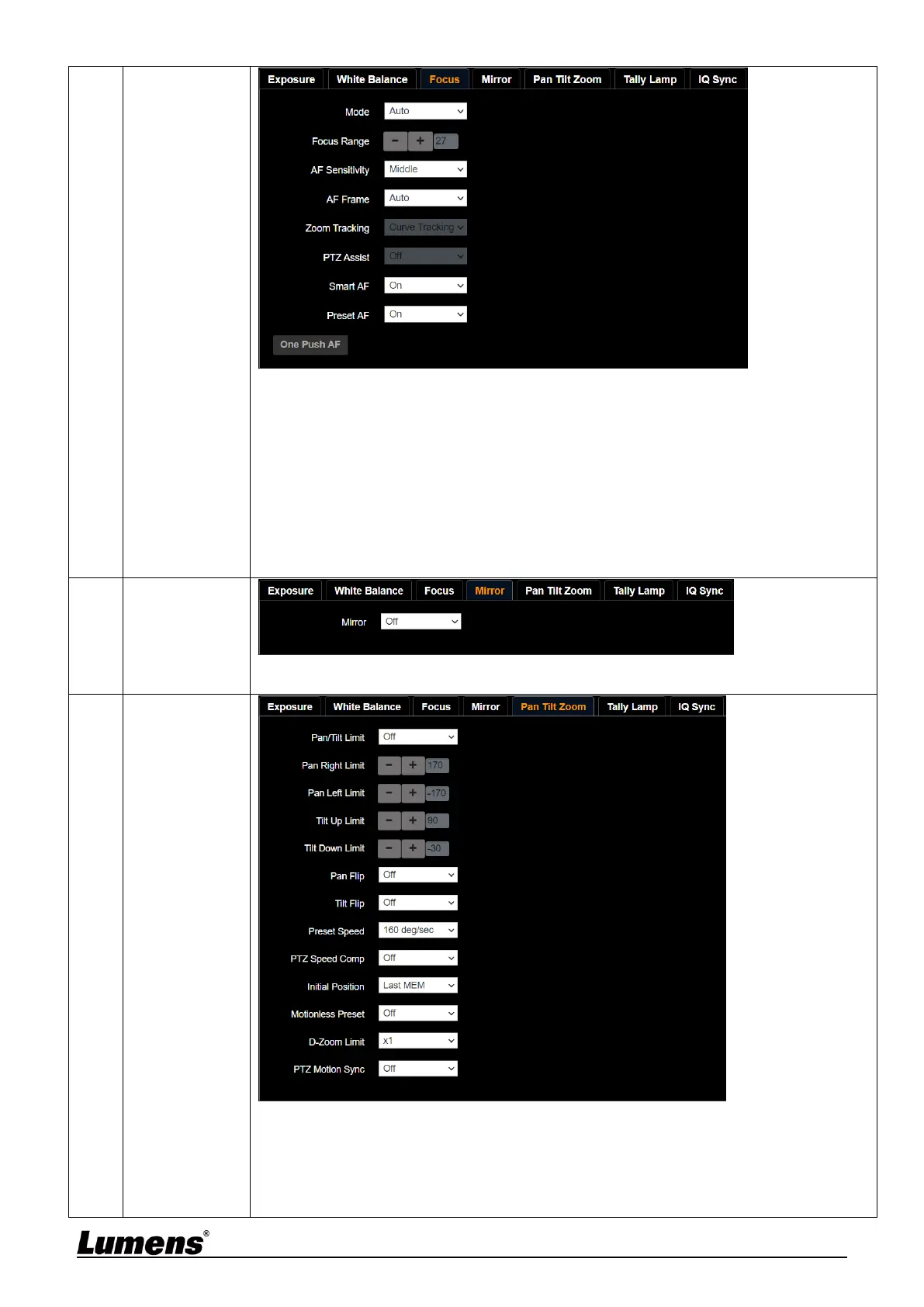 PTZ Speed Comp: Set the Pan/Tilt moving speed to vary from the zoom position