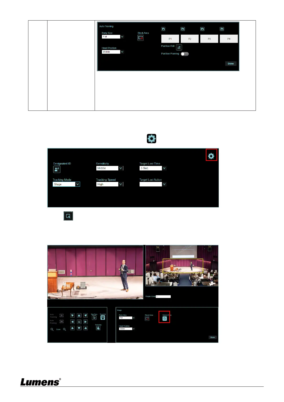 1. Select [Stage] for Tracking Mode, and click to access the settings